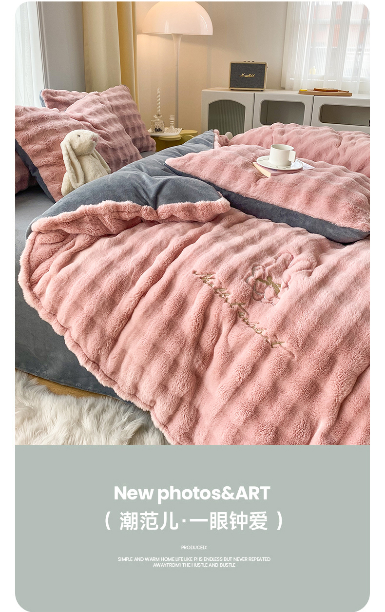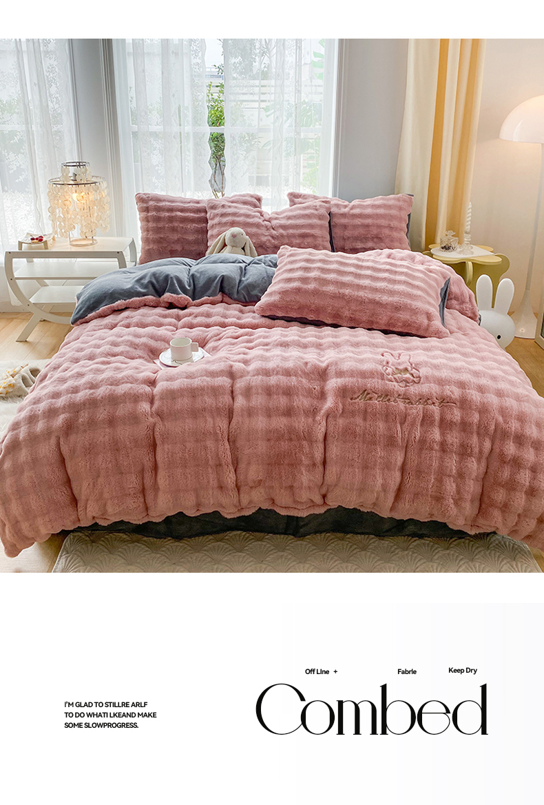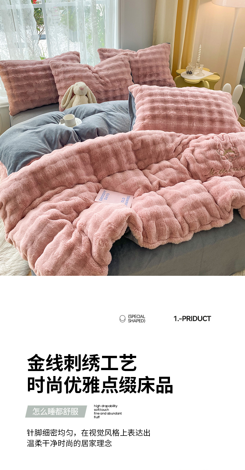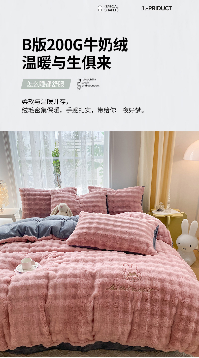 当前位置: 91家纺网 > 商品网购 > 床品套件 > 四件套 > 其它四件套 > 潮邦创意家居 2025新款小米兔泡泡兔绒保暖四件套 米兔豆沙