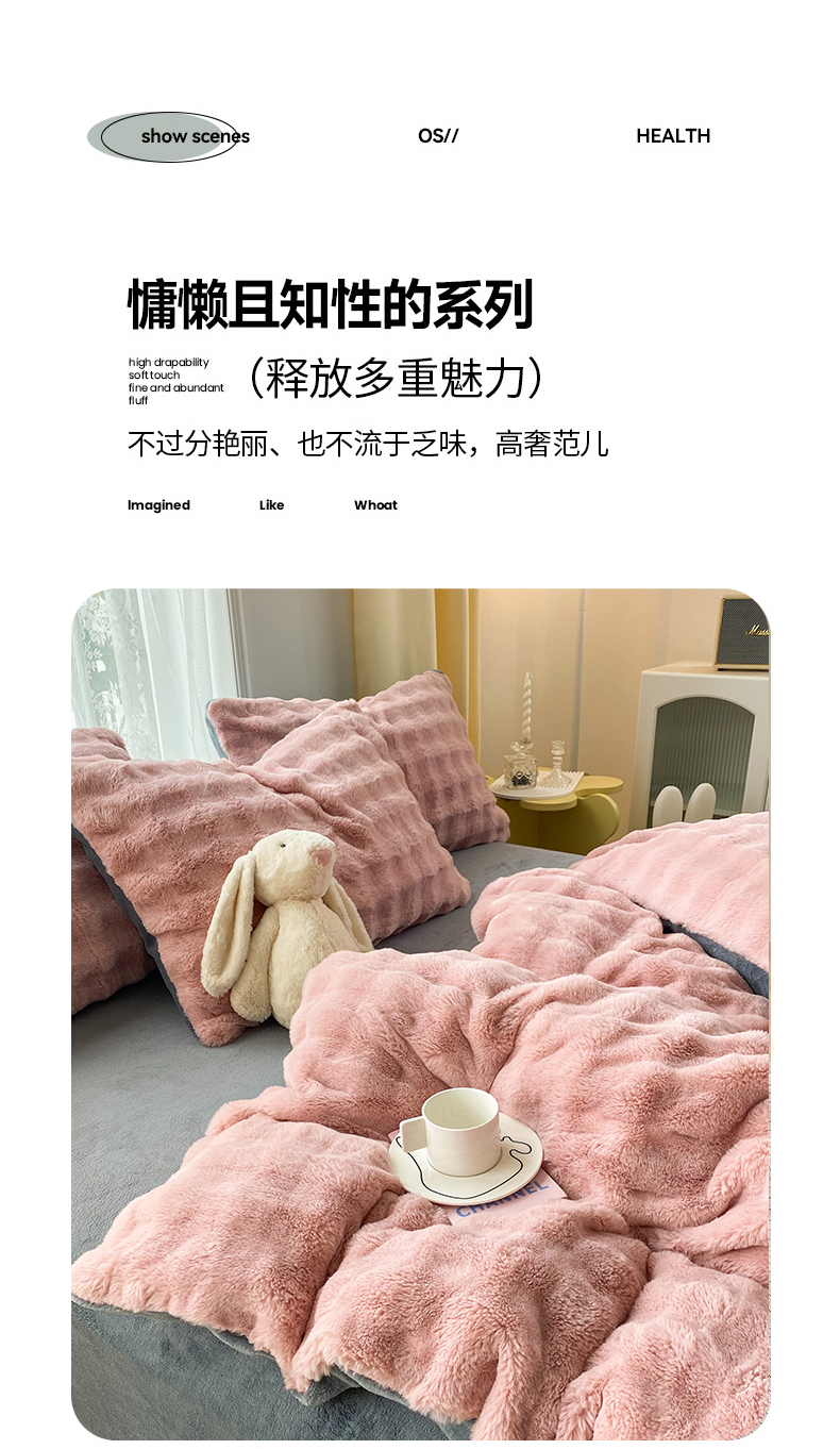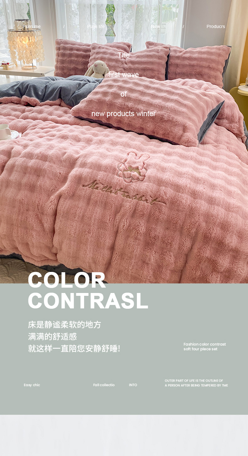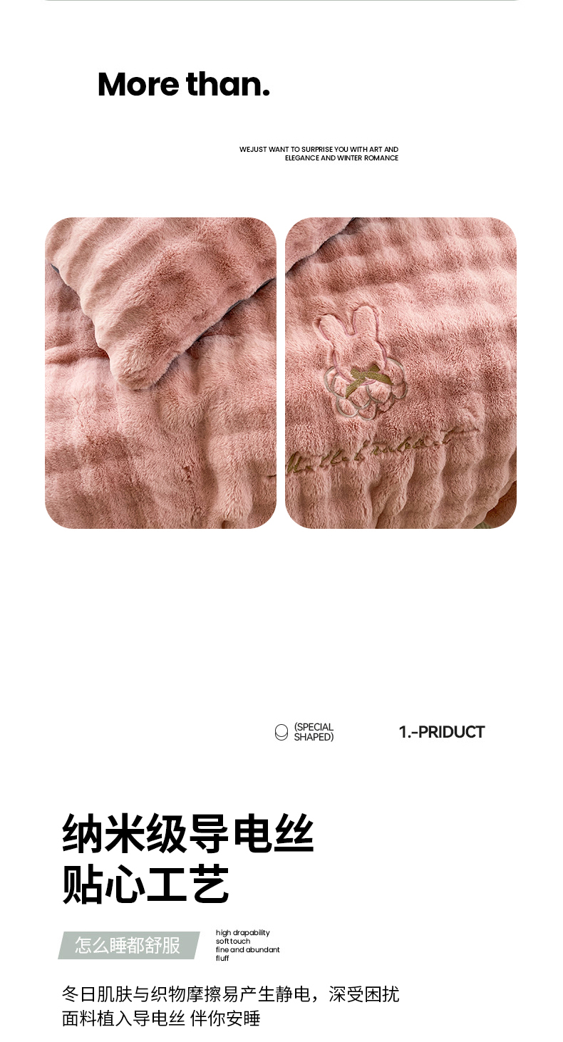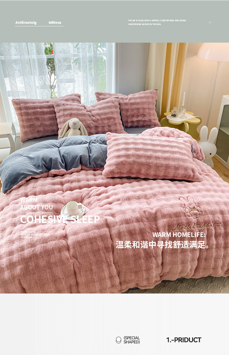 当前位置: 91家纺网 > 商品网购 > 床品套件 > 四件套 > 其它四件套 > 潮邦创意家居 2025新款小米兔泡泡兔绒保暖四件套 米兔豆沙