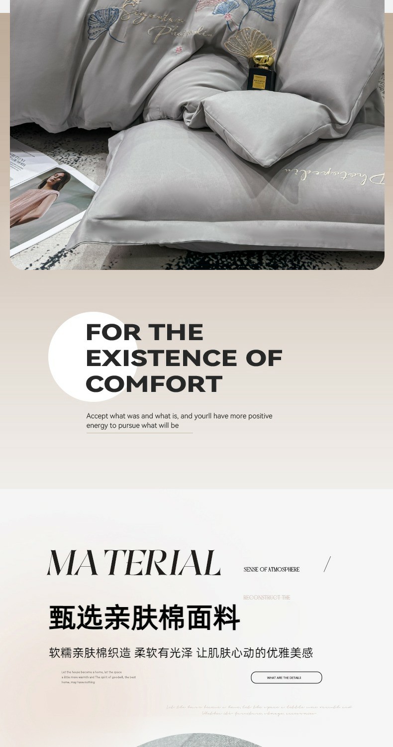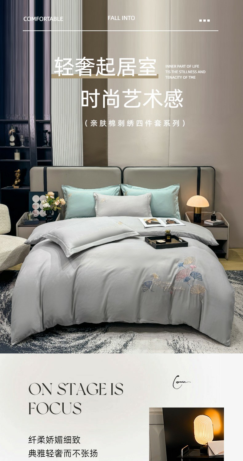 商品名称:悦织湾家纺 90克磨毛刺绣纯色四件套2025新款轻奢韩版公主风精致床上用品绣花亲肤水洗棉4件套 新银杏-浅灰
