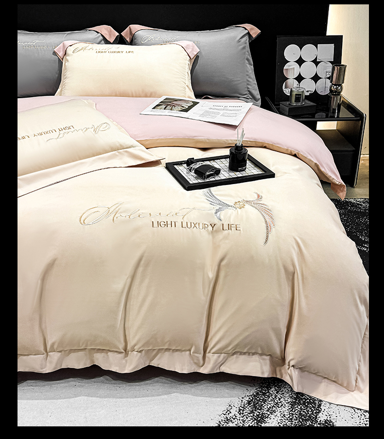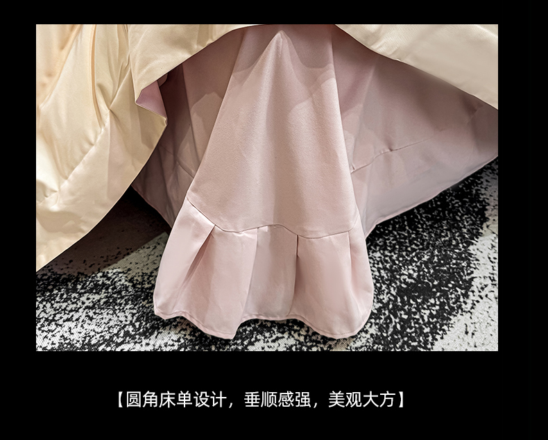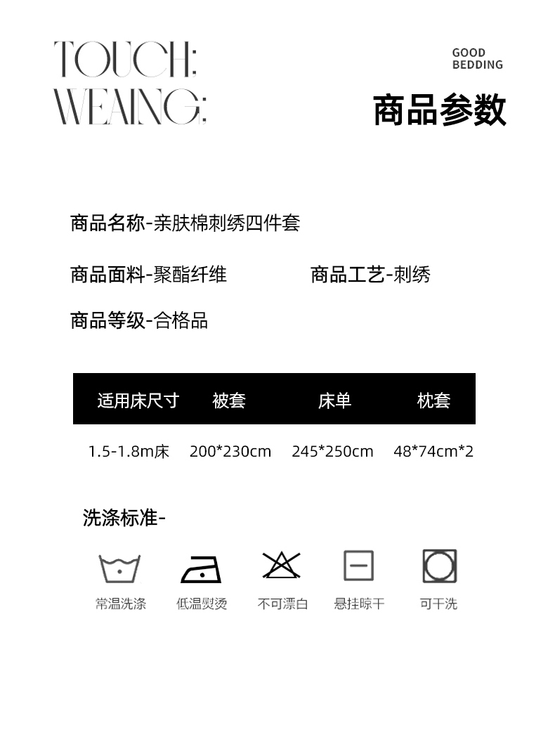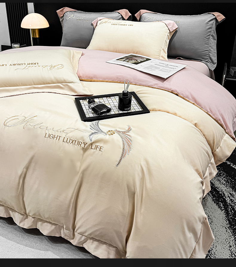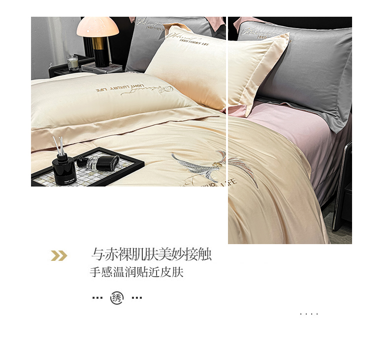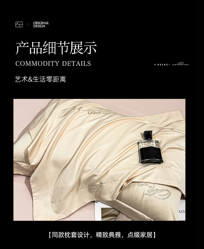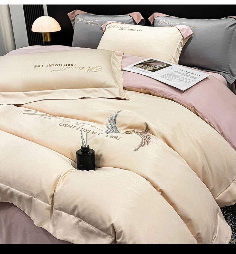 商品名称:悦织湾家纺 亲肤120克水洗棉磨毛刺绣纯色四件套2025新款轻奢韩版公主风精致床上用品绣花4件套 宽境香槟