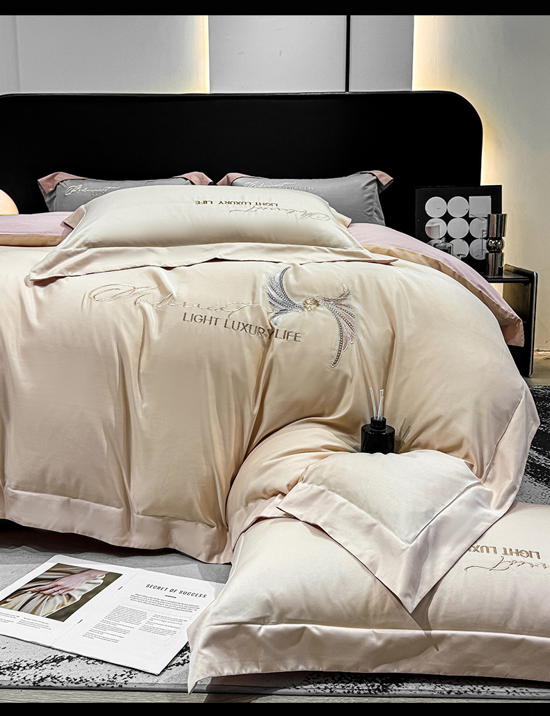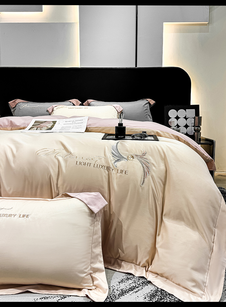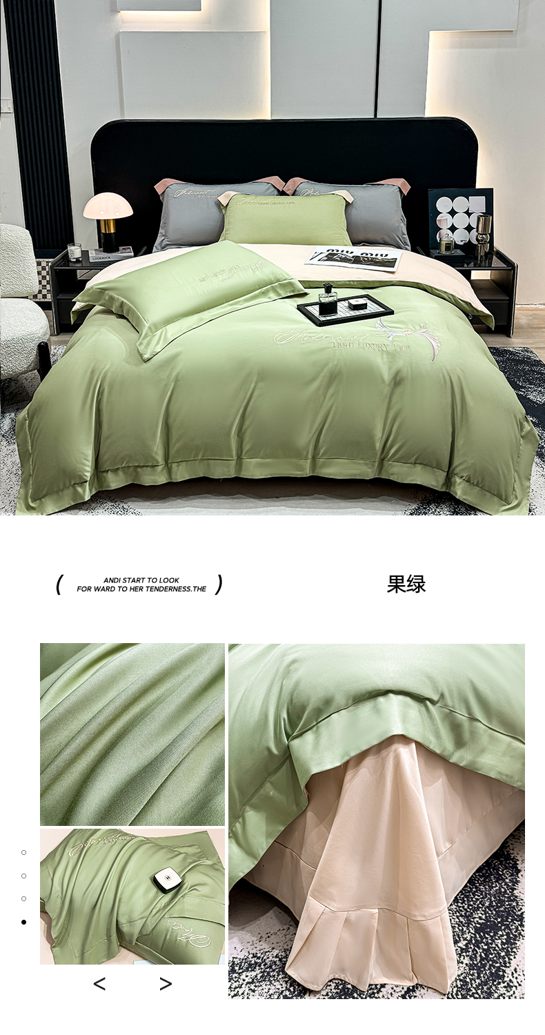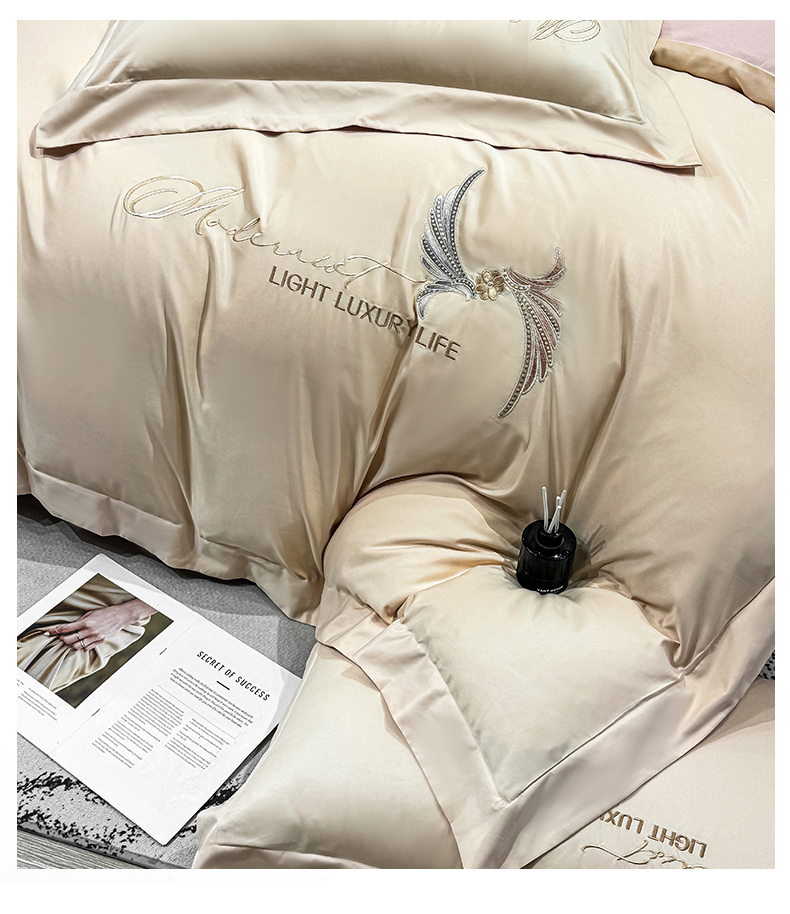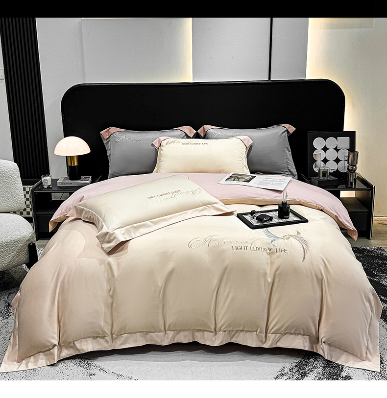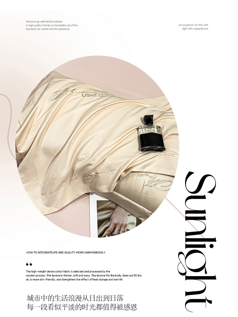 商品名称:悦织湾家纺 亲肤120克水洗棉磨毛刺绣纯色四件套2025新款轻奢韩版公主风精致床上用品绣花4件套 宽境香槟