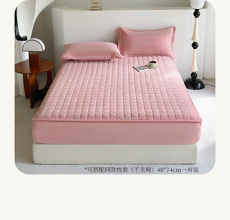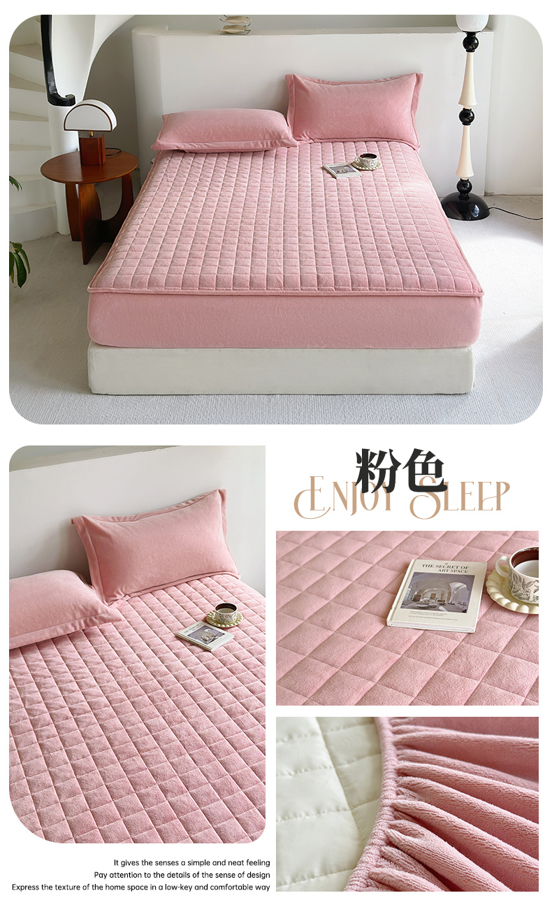 (总)寝柔家纺 2025新款冬季纯色消光加厚牛奶绒夹棉床笠,白色,藏青,粉色,灰色,绿色,驼色