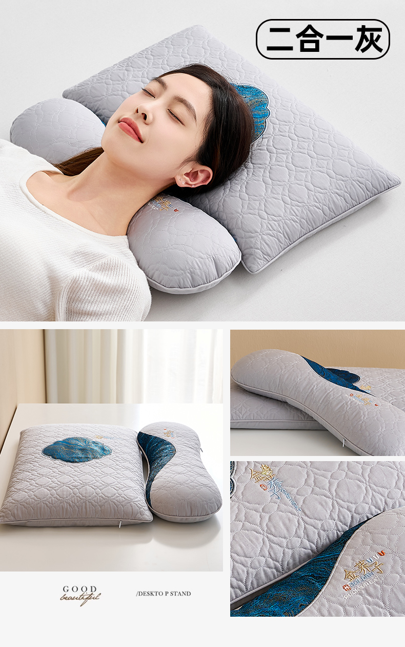 商品名称:乐可 2025新款金荞子二合一枕枕头枕芯 金荞子套装-灰