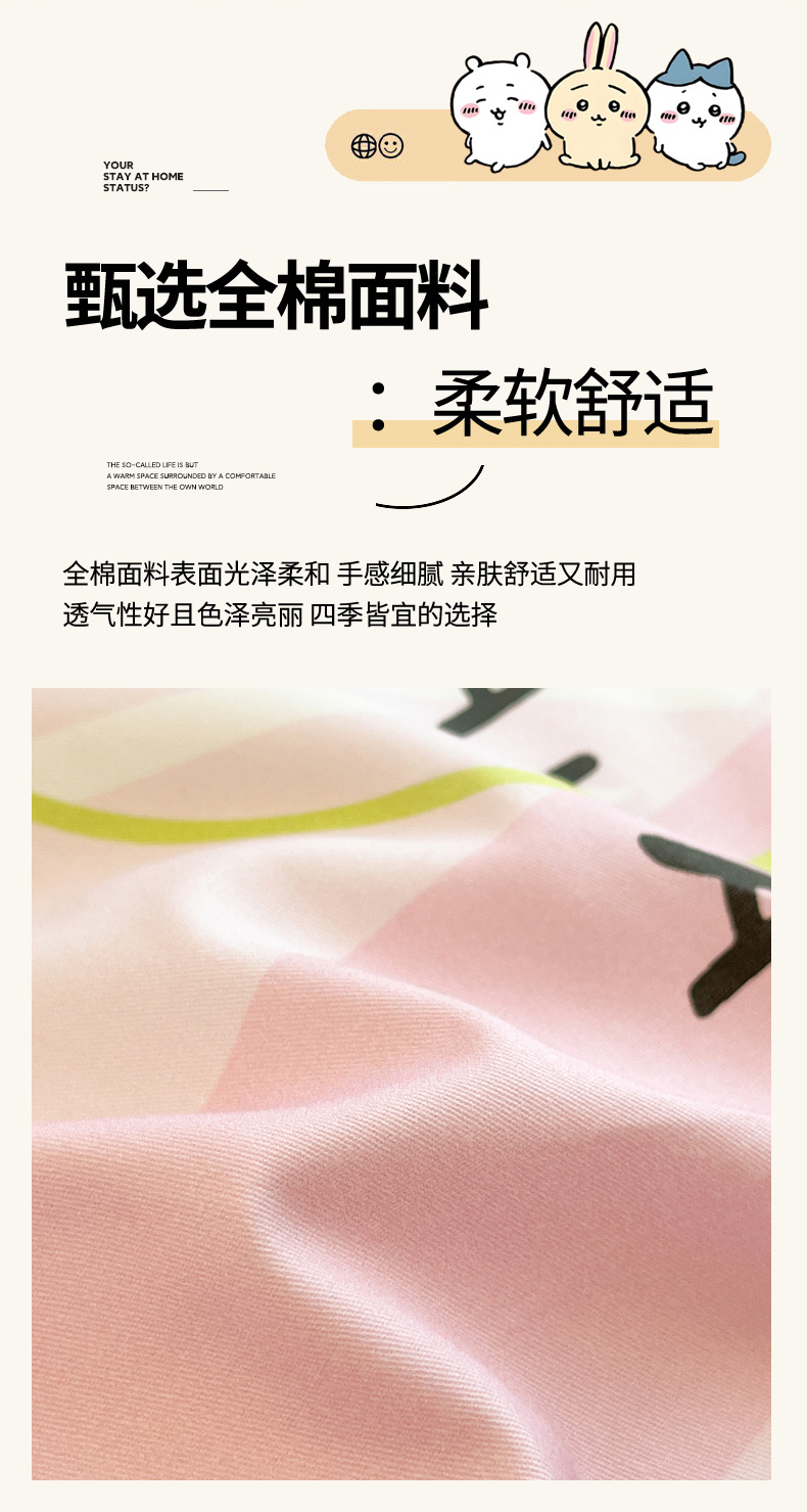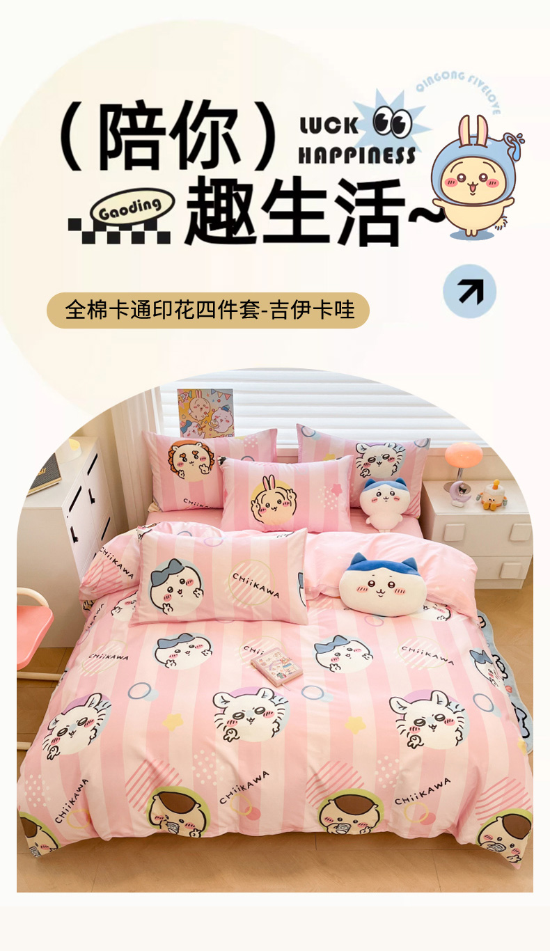当前位置: 91家纺网 > 商品网购 > 床品套件 > 四件套 > 全棉普通四件套 > 暮思家居 2026新款正版授权吉伊卡哇全棉纯棉四件套 格子吉伊卡哇