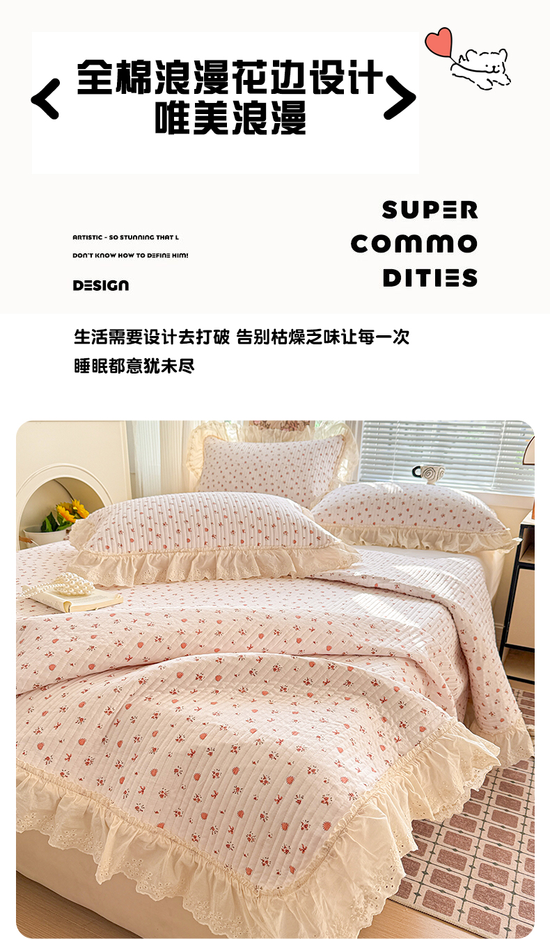 (总)亨通家纺 2026新款古法水洗棉花边夹棉床盖单床盖床盖单件,春天里,含香,和风细雨,花田与夏,少女茶会红,甜豆女孩,小苍兰,瑶花知,珍妮,组合图 仅供参考