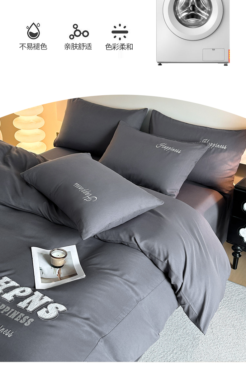 (总)麦空 2025新款水洗棉刺绣纯色四件套-晴空系列,宾利蓝,初黄,梵星蓝,海青,玫瑰粉,奶茶,奶昔白,奶油粉,山灰,天空蓝,星空蓝,中灰