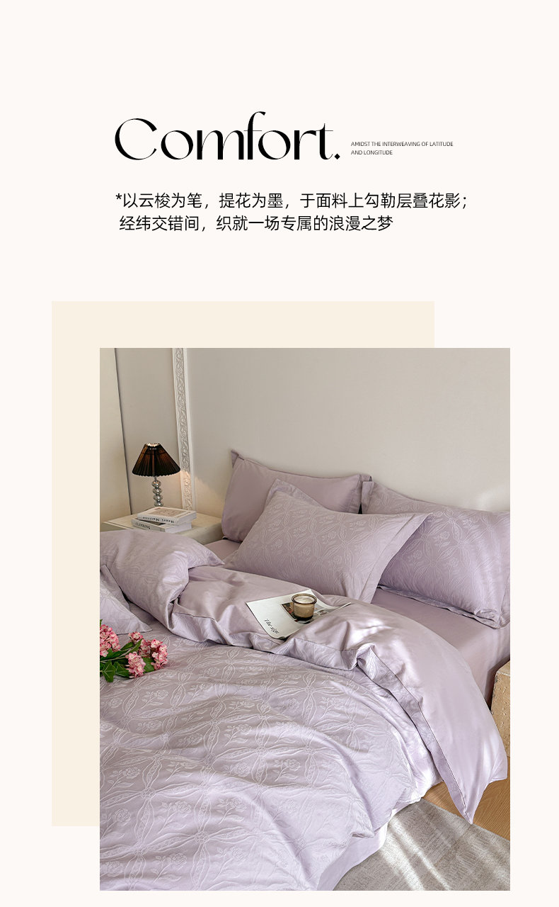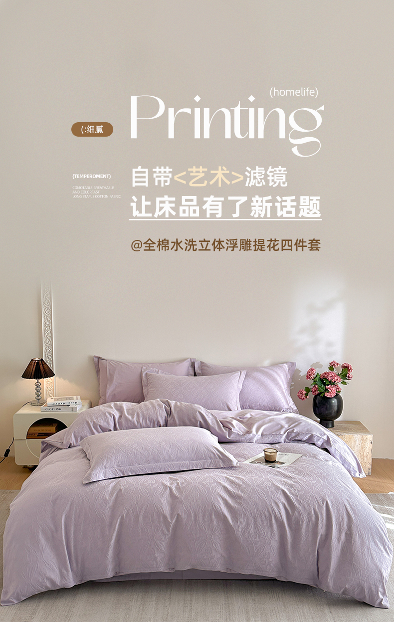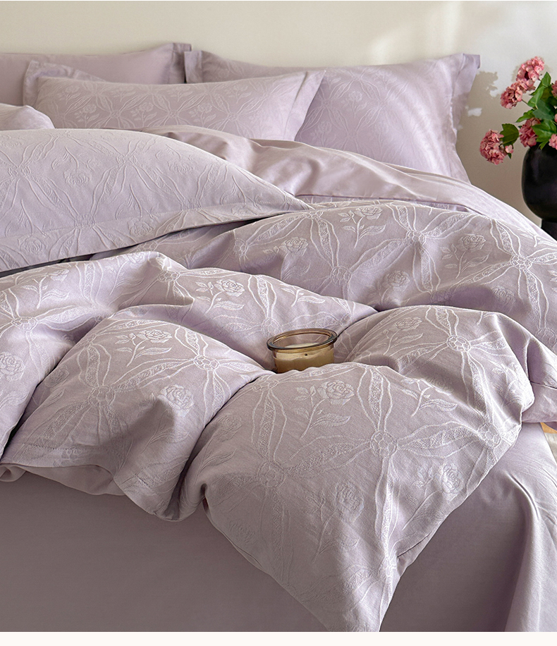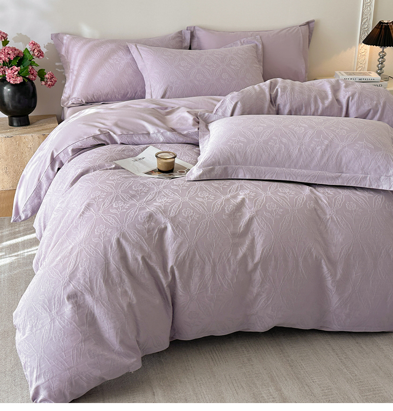 商品名称:格里芬家纺 2026新款全棉水洗立体浮雕提花纯棉四件套 恩特斯大-丁香紫