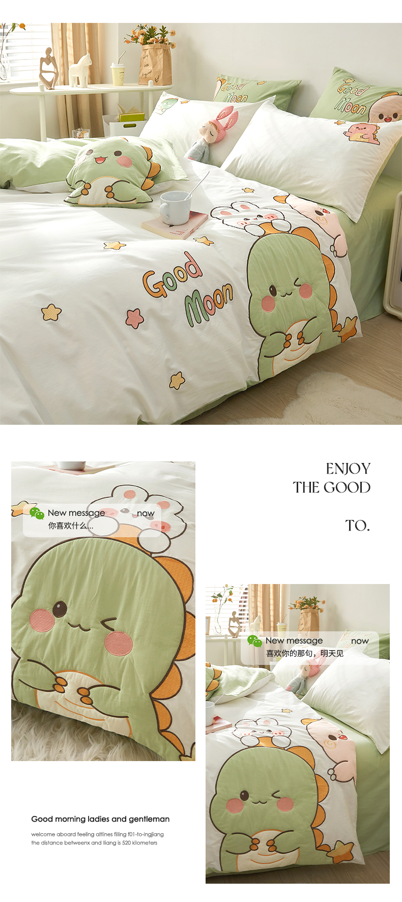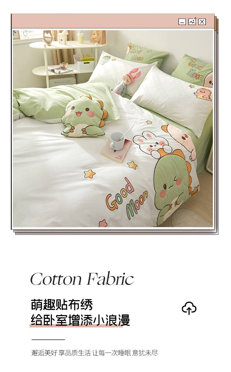 当前位置: 91家纺网 > 商品网购 > 床品套件 > 四件套 > 全棉普通四件套 > 涵宸家纺 2026新款全棉贴布绣小清新卡通系列四件套 萌龙