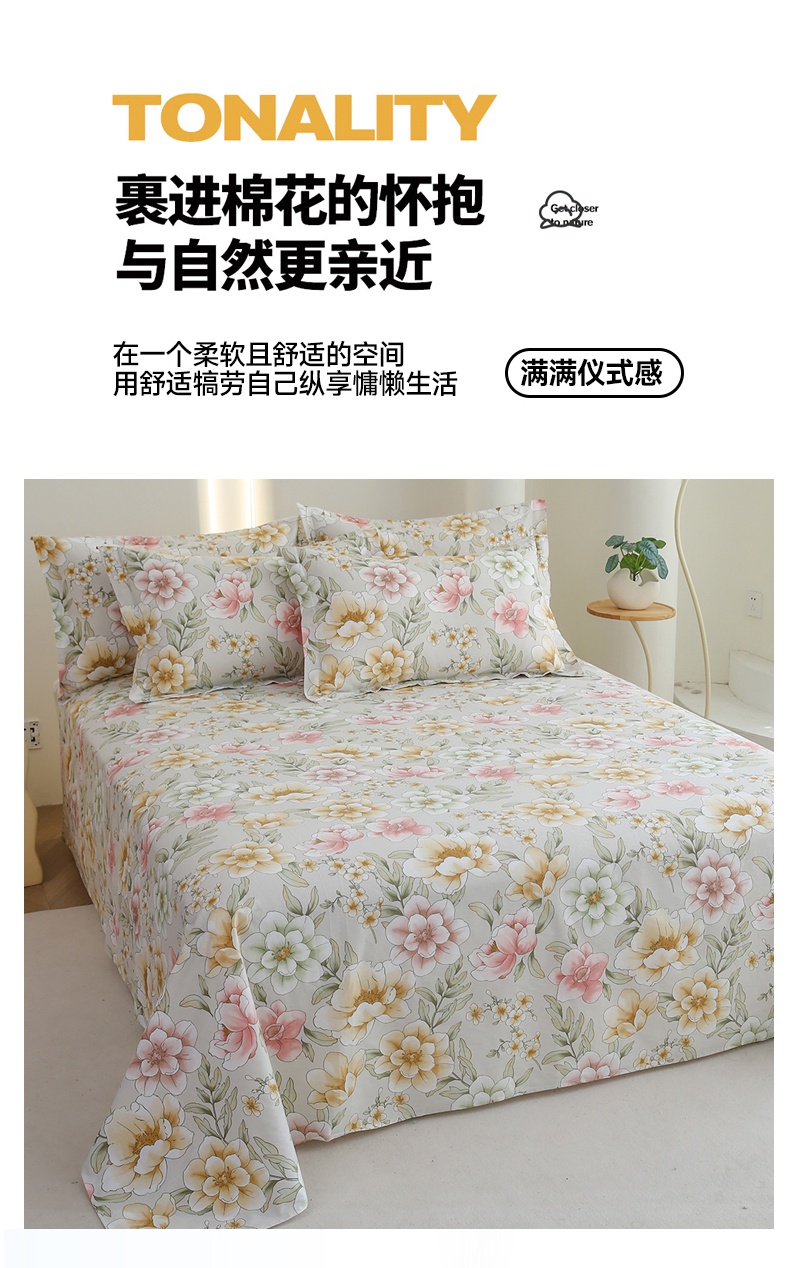 • 91家纺网 家纺一手货源 找家纺 优家居工厂店 2026新款13360纯棉床单单件印花全棉加厚大学生宿舍三件套 黛丽丝