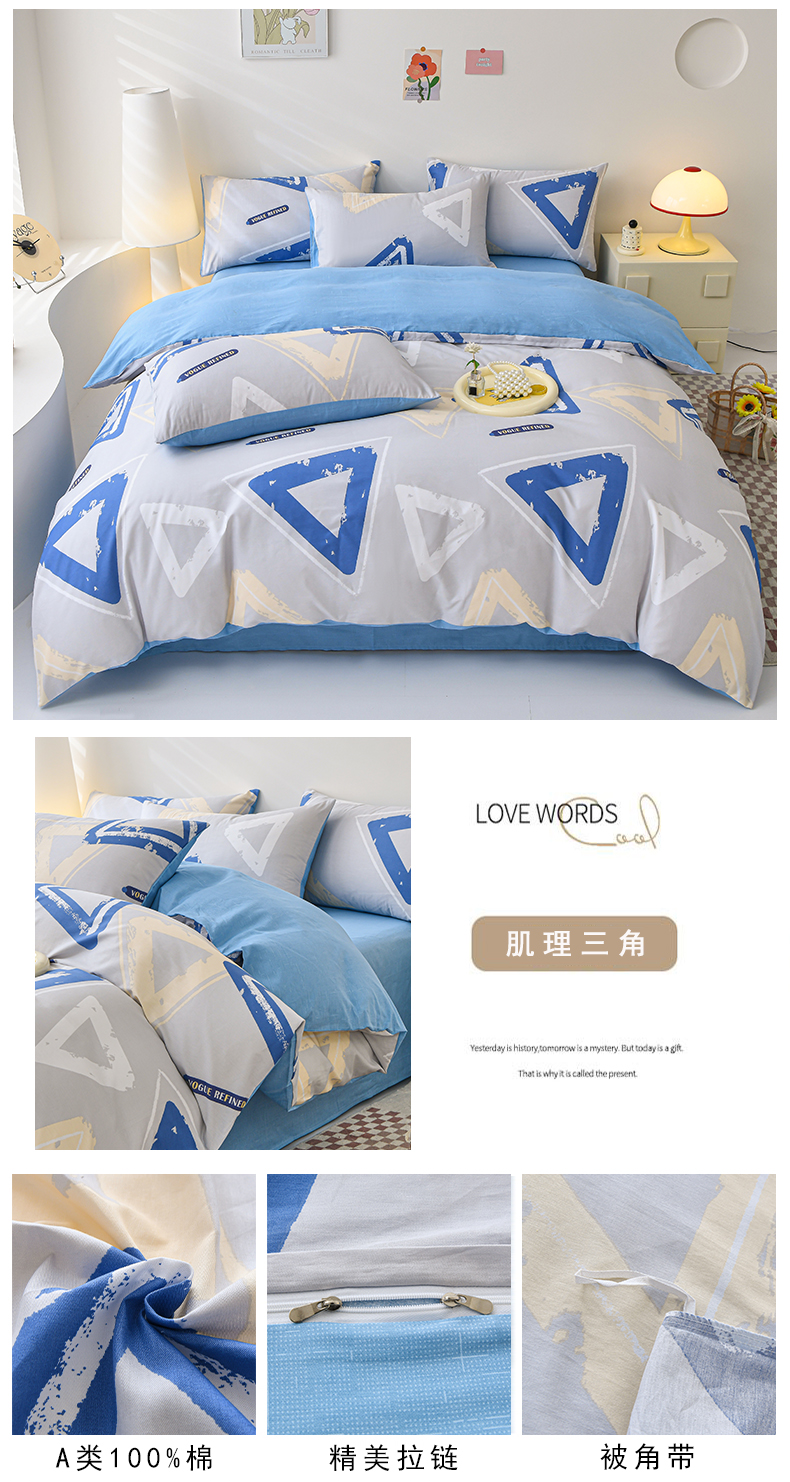 当前位置: 91家纺网 > 商品网购 > 床品套件 > 四件套 > 全棉普通四件套 > 宇彬家纺 2026直播新款13070A类全棉纯棉印花床单床笠款四件套和单被套喷气清新简约(缩水足可定做) 浔彩