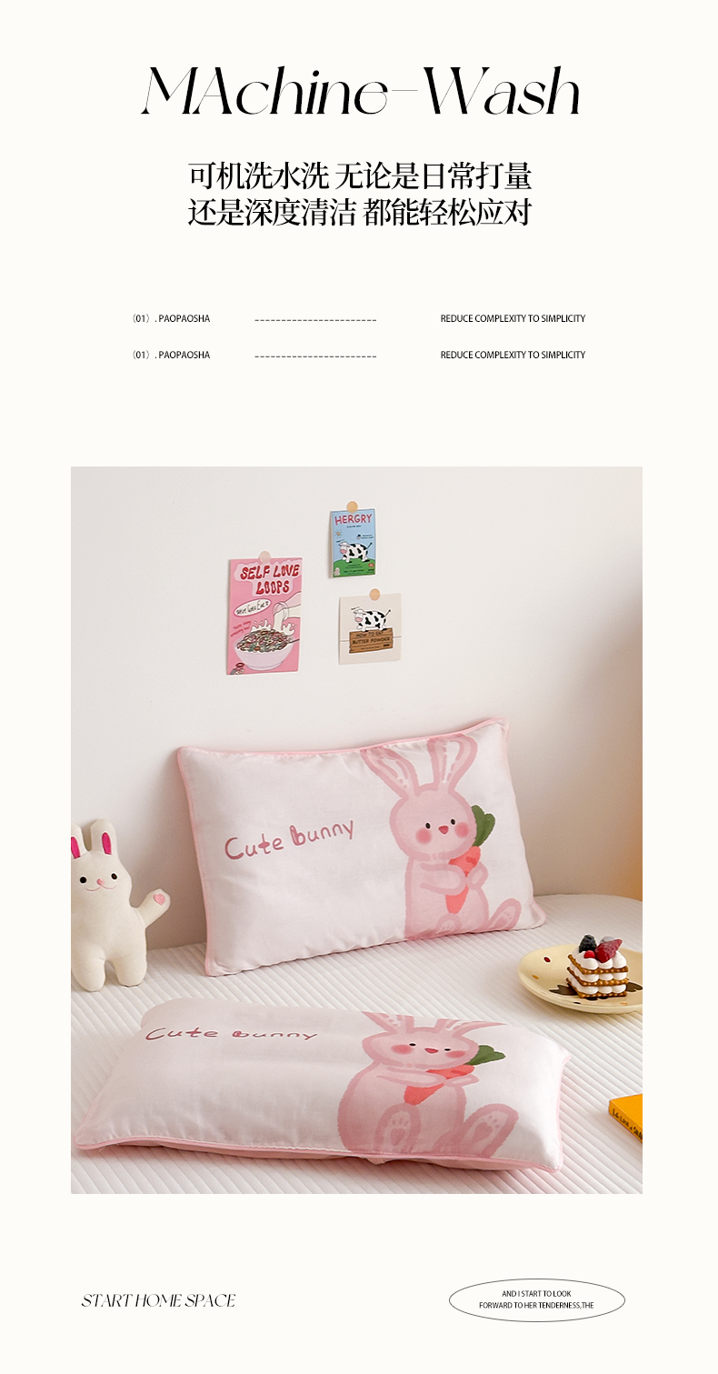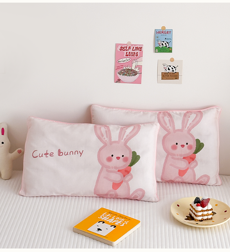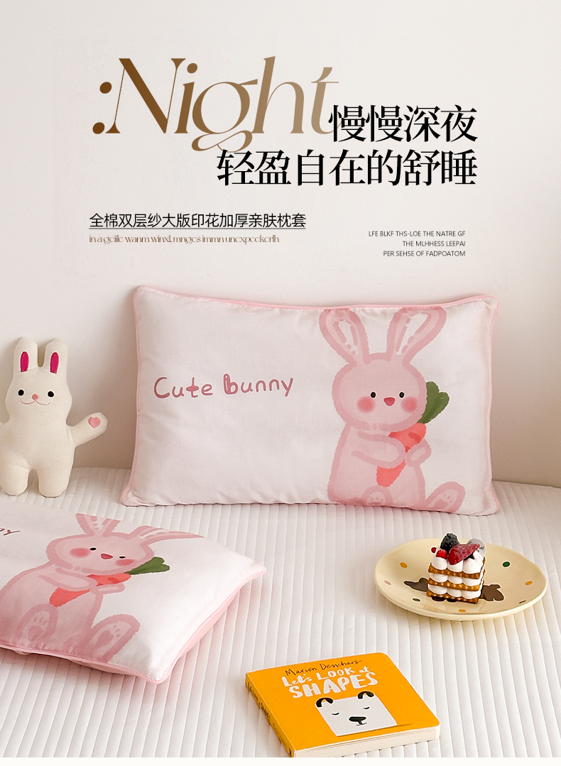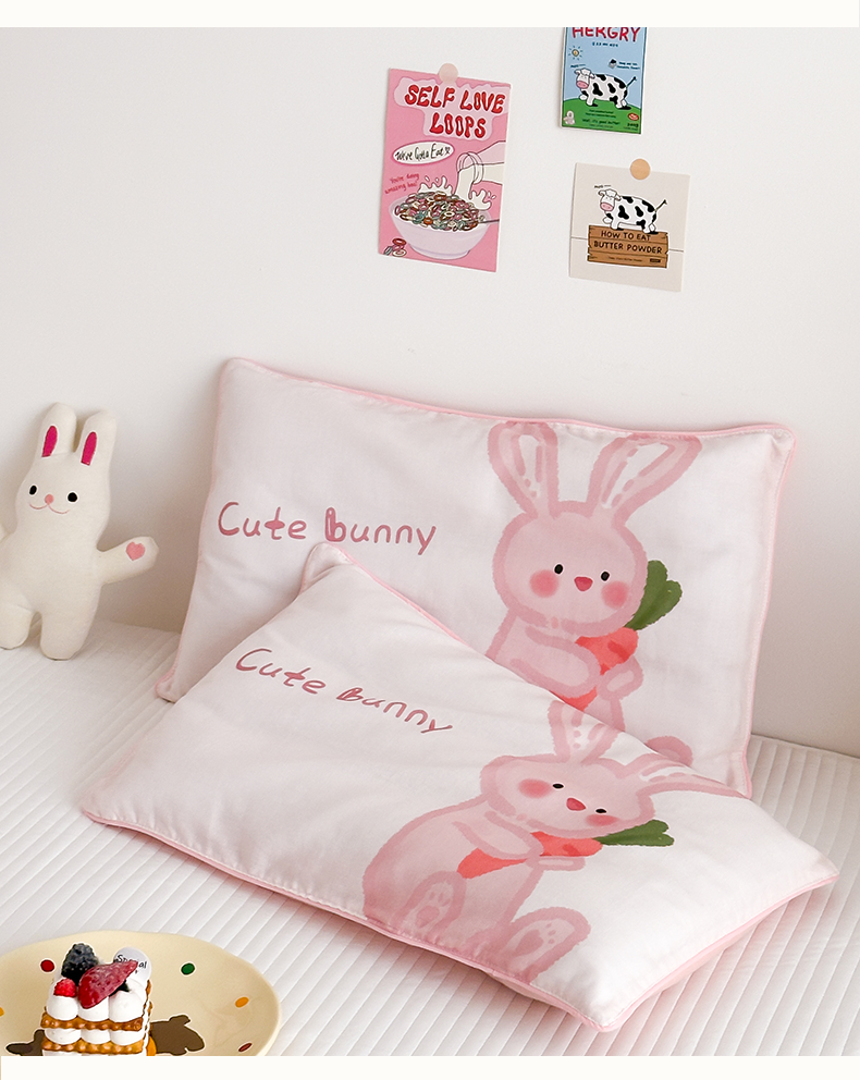 商品名称:嗨生活 2026新款全棉纯棉双层纱大版枕套儿童枕套幼儿园枕套枕芯单品枕套枕套单件 长耳兔