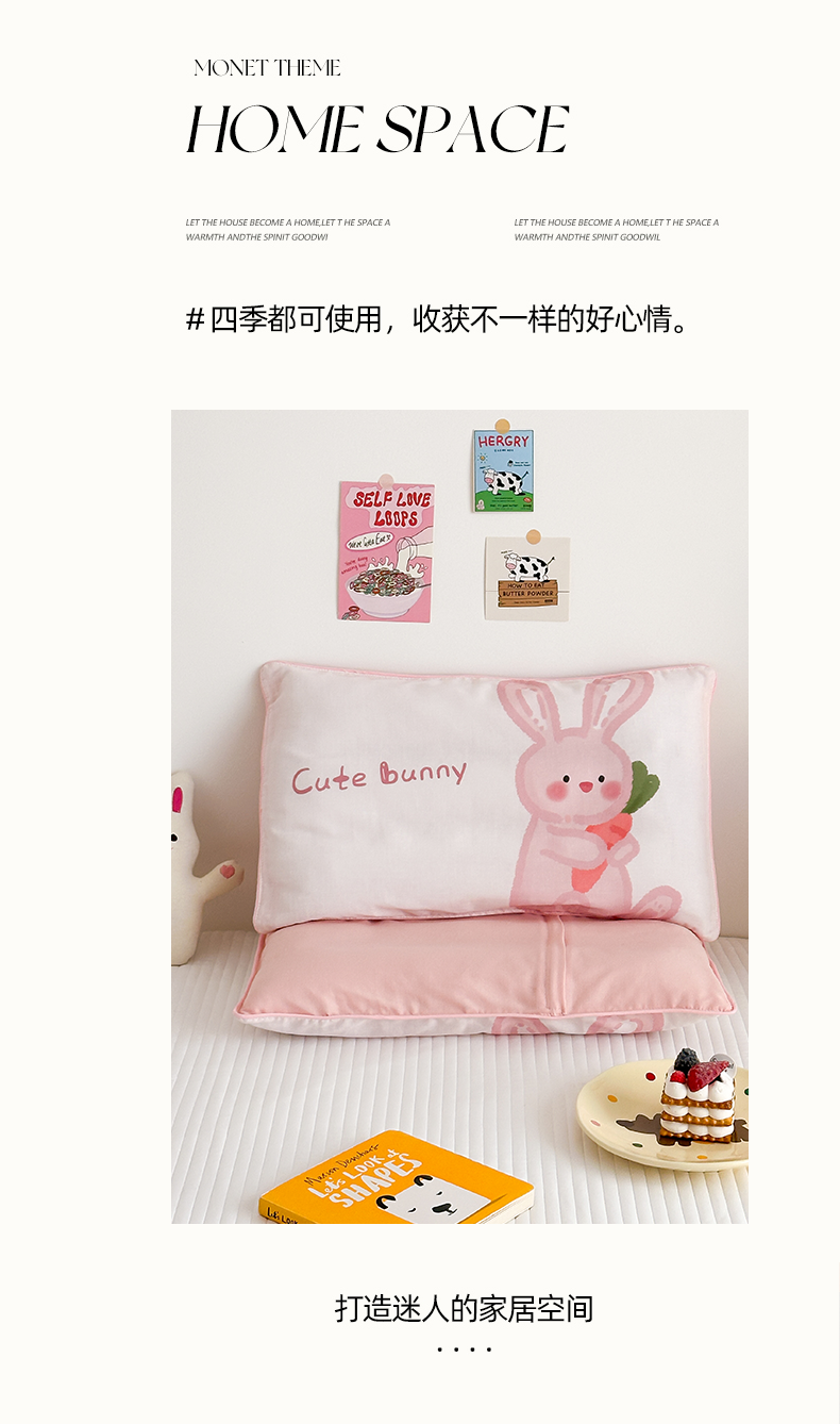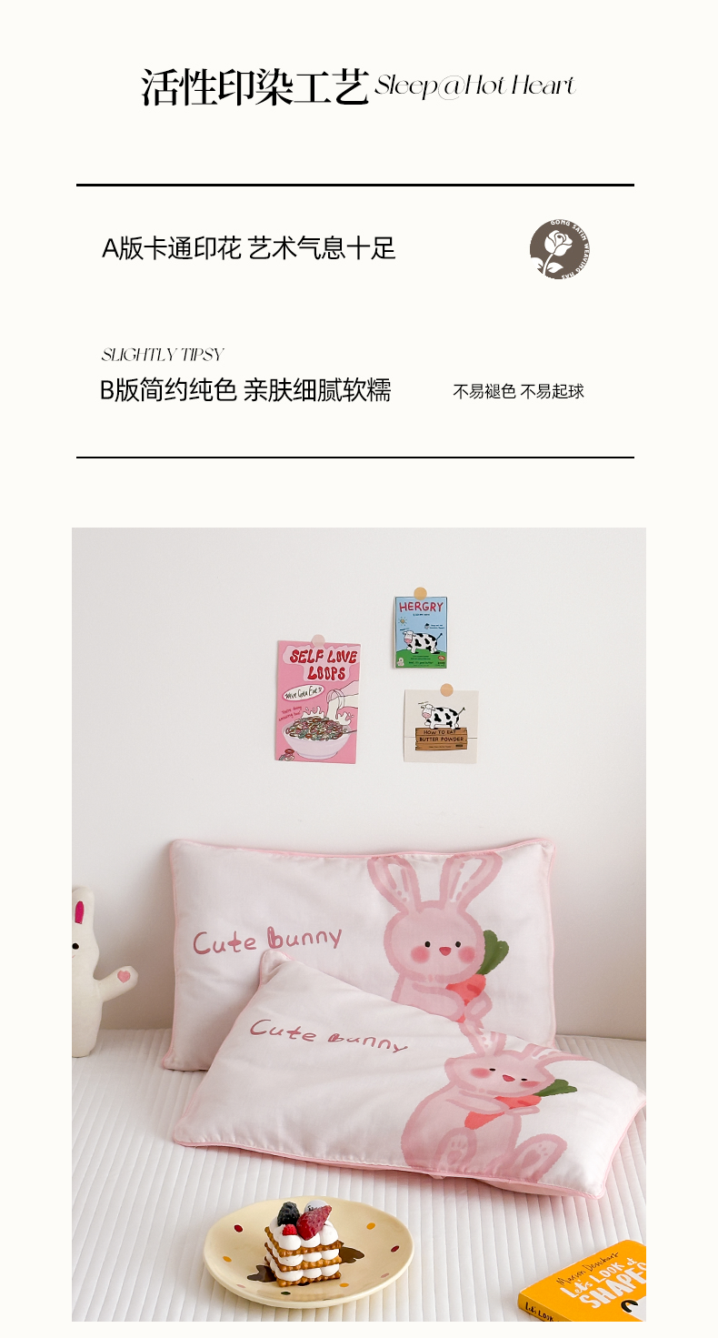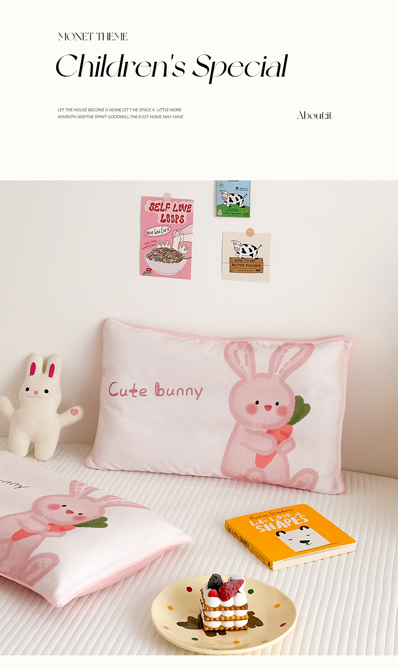 商品名称:嗨生活 2026新款全棉纯棉双层纱大版枕套儿童枕套幼儿园枕套枕芯单品枕套枕套单件 长耳兔