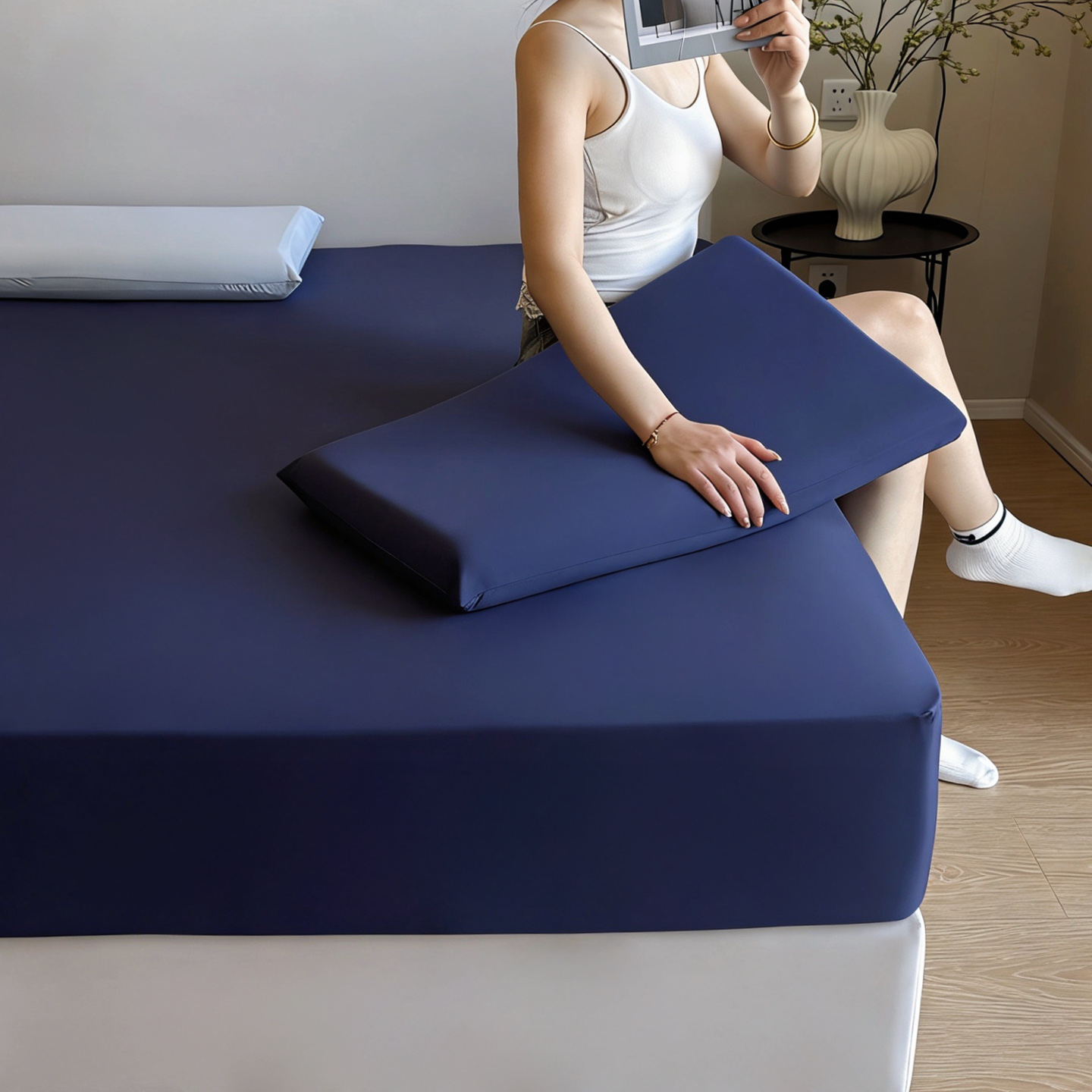 (总)兜米家居 2026新款某姆同款锦氨A类凉感(180克)床笠三件套,薄荷绿,高雅紫,浅灰,浅蓝,深蓝,胭脂粉,组合图