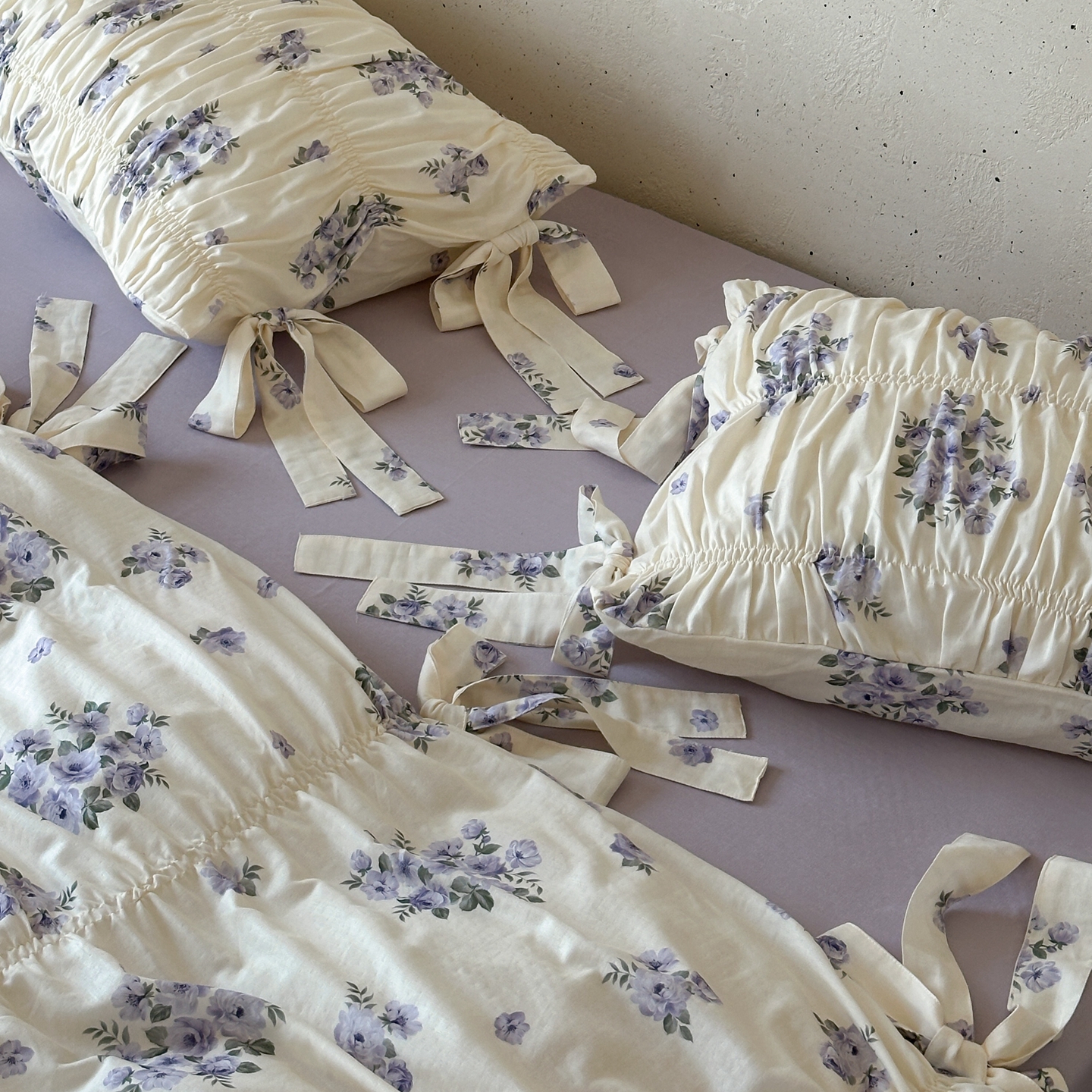 当前位置: 91家纺网 > 商品网购 > 床品套件 > 四件套 > 全棉普通四件套 > 觅糖家纺 2026春夏新款全棉纯棉法式轻奶油系列四件套 蕊英紫
