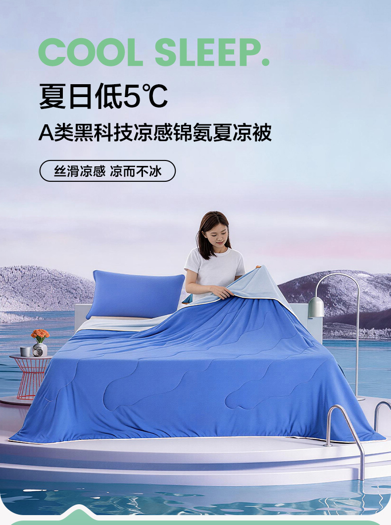 迪梵家纺 2026新款锦氨凉感黑科技(160克面料)凉感丝夏被冰淇淋夏凉被空调被-风格三 嘟嘟蓝