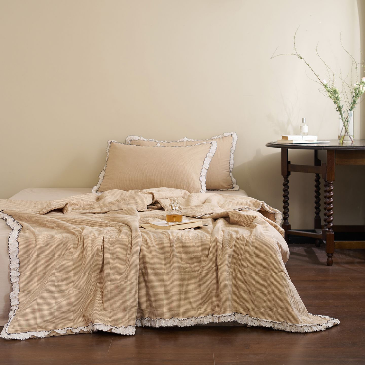 洋铭区(原狠狠爱) 2026新款色织水洗棉花边夏被 小格子-甜蜜黄