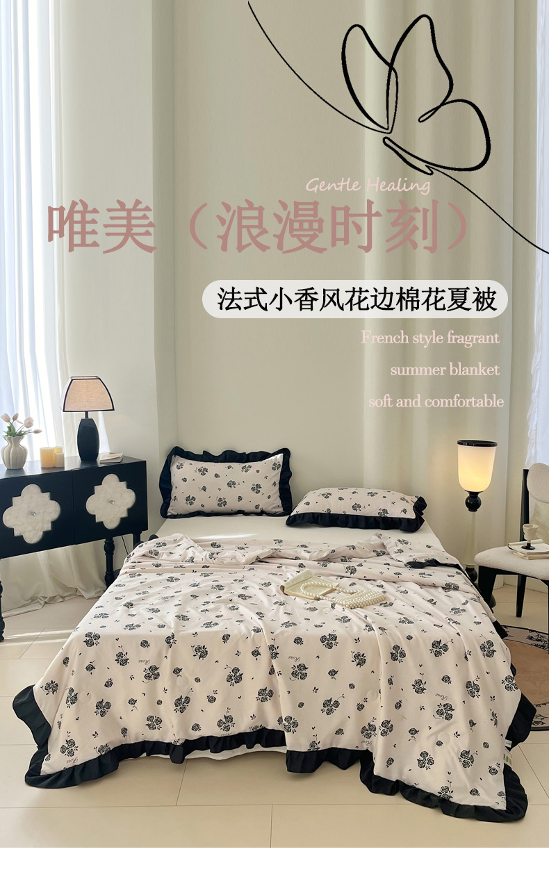 商品名称:vip被业 2026新款新疆棉花双层纱皱皱纱法式赫本风韩版小香ins风空调夏被 时间煮雨
