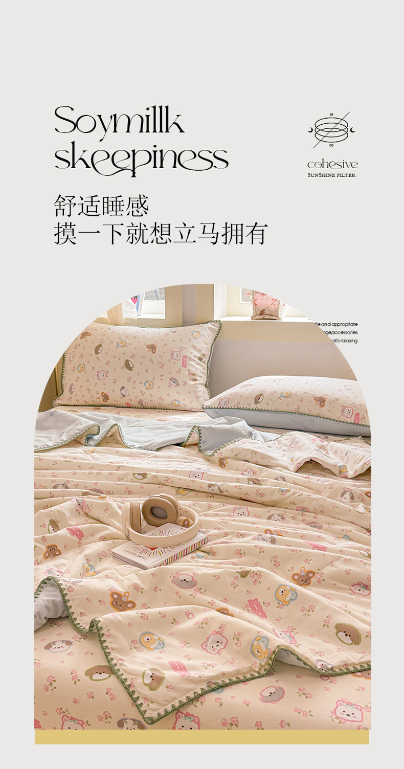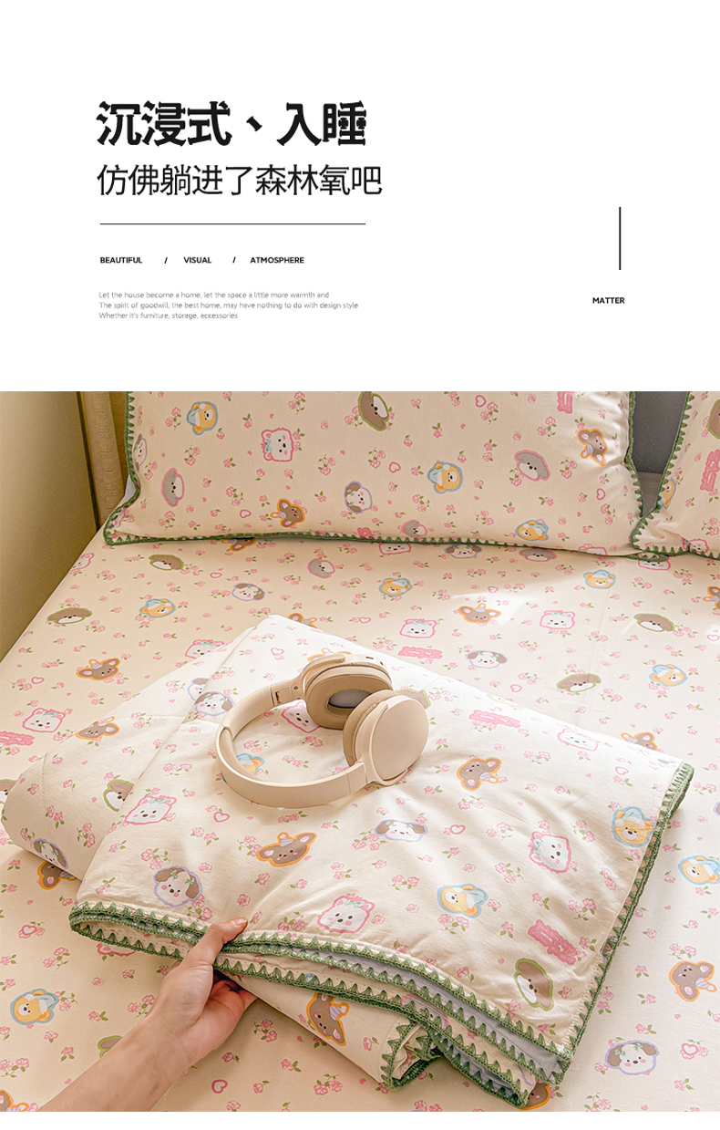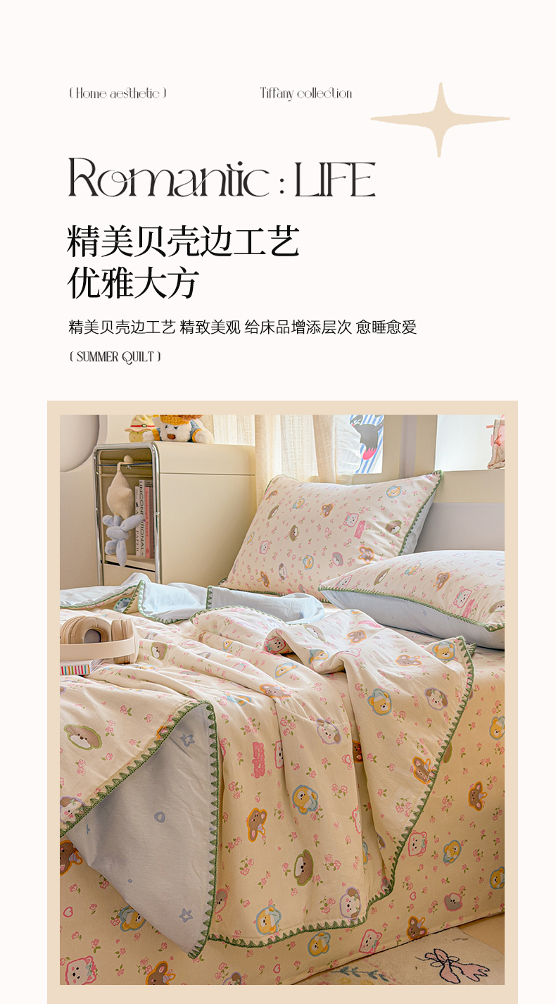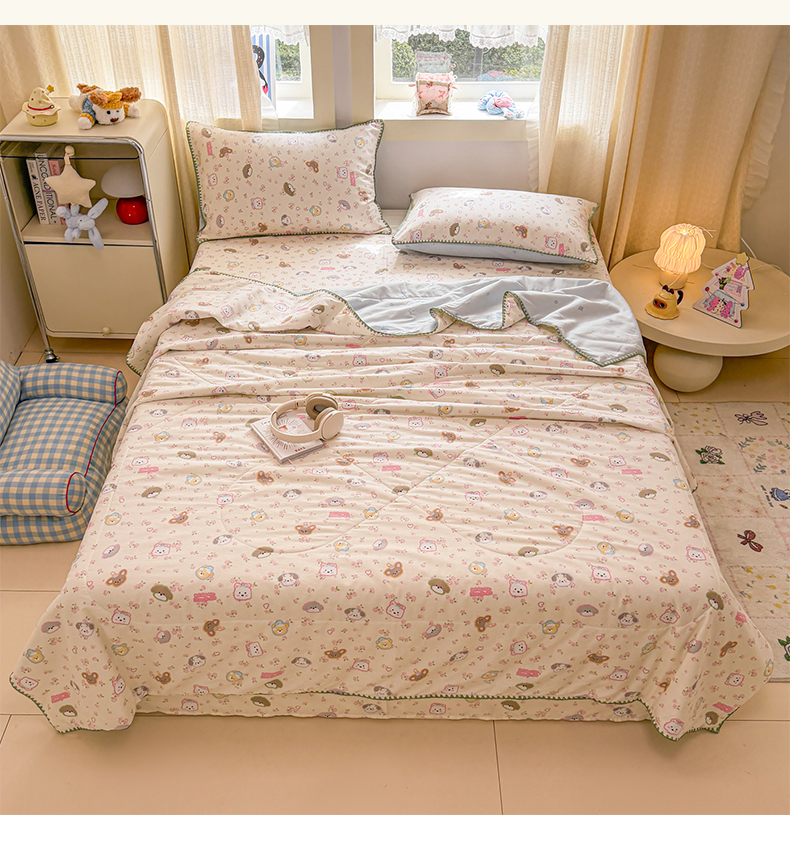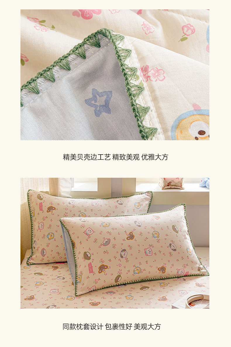 当前位置: 91家纺网 > 商品网购 > 床品套件 > 四件套 > 全棉普通四件套 > 简宜家居(朝初家纺) 2026新款全棉花卉卡通系列贝壳边夏被四件套 萌友聚会
