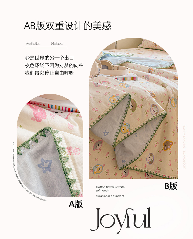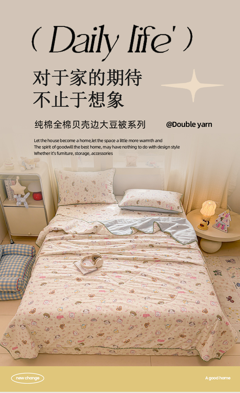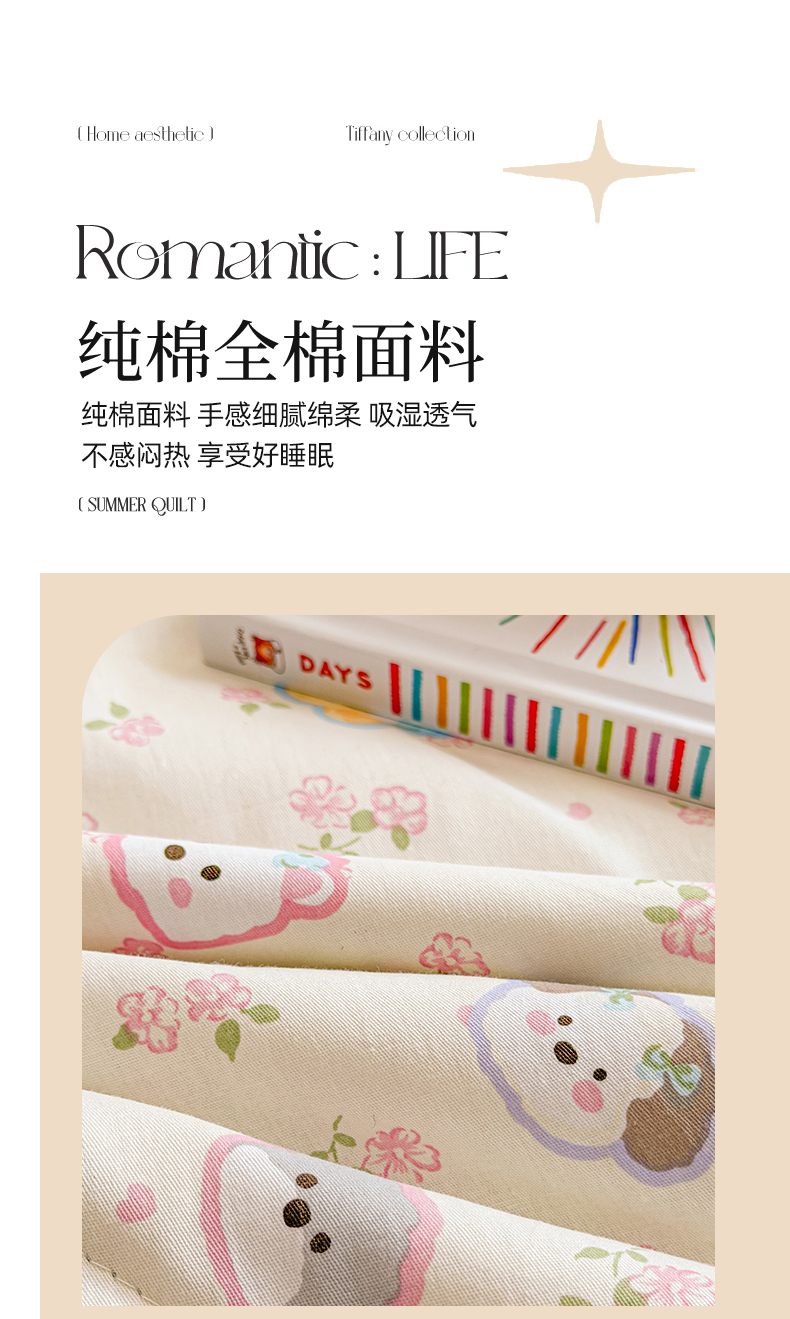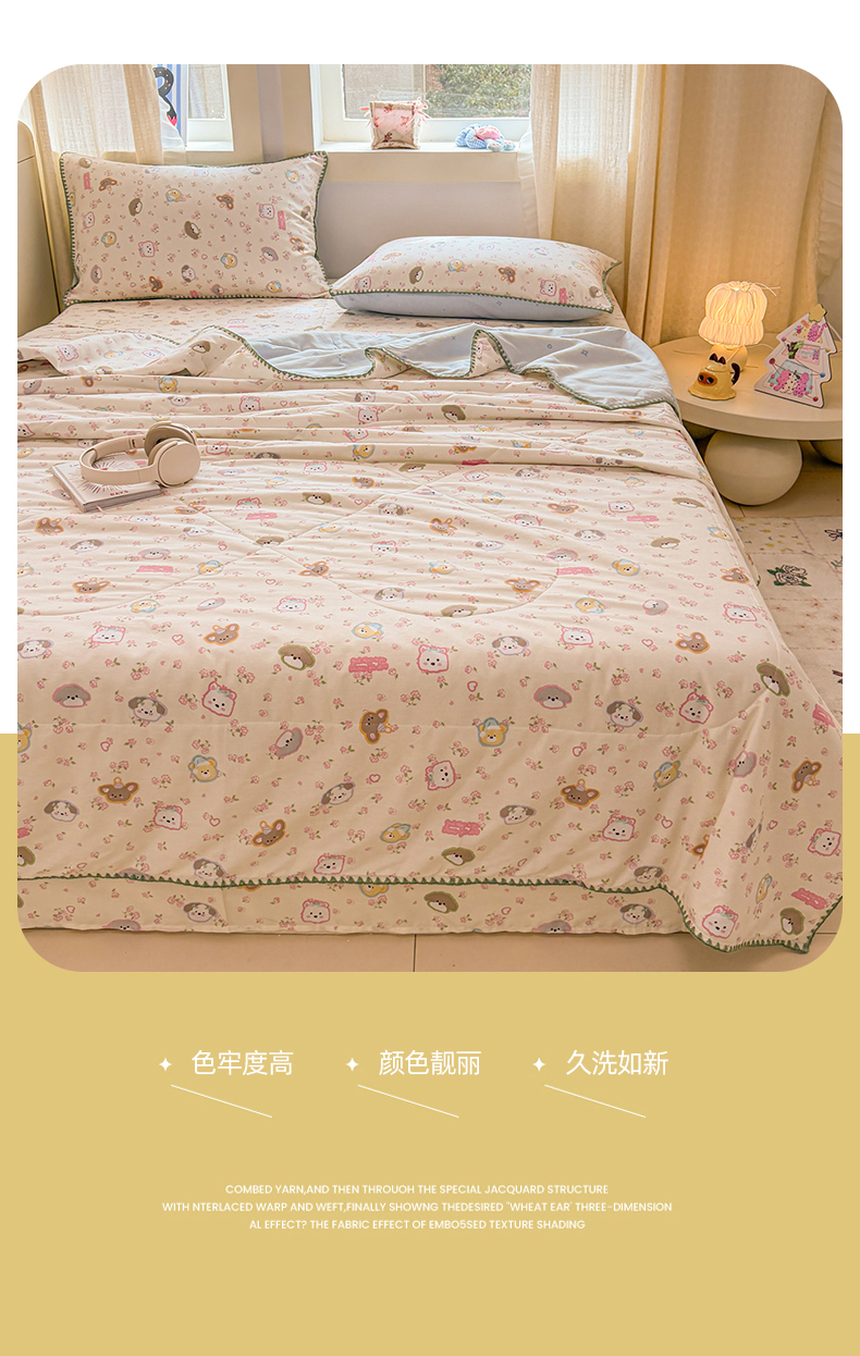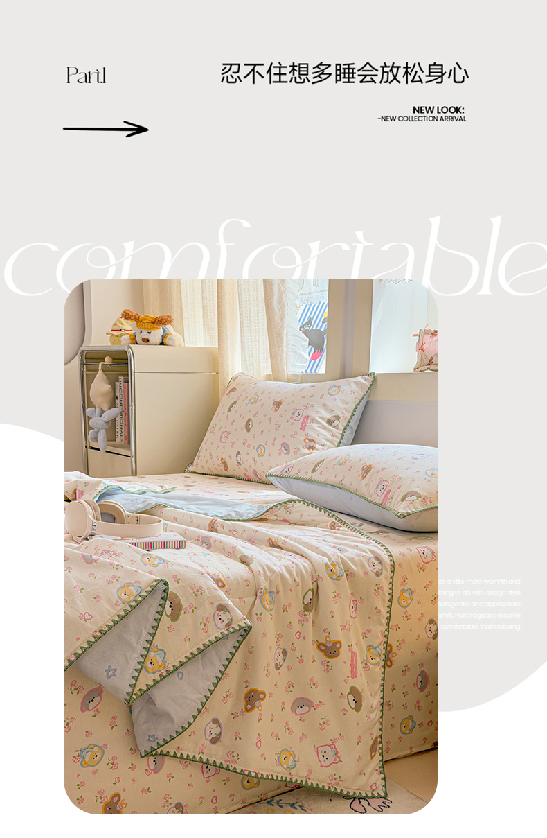 当前位置: 91家纺网 > 商品网购 > 床品套件 > 四件套 > 全棉普通四件套 > 简宜家居(朝初家纺) 2026新款全棉花卉卡通系列贝壳边夏被四件套 萌友聚会