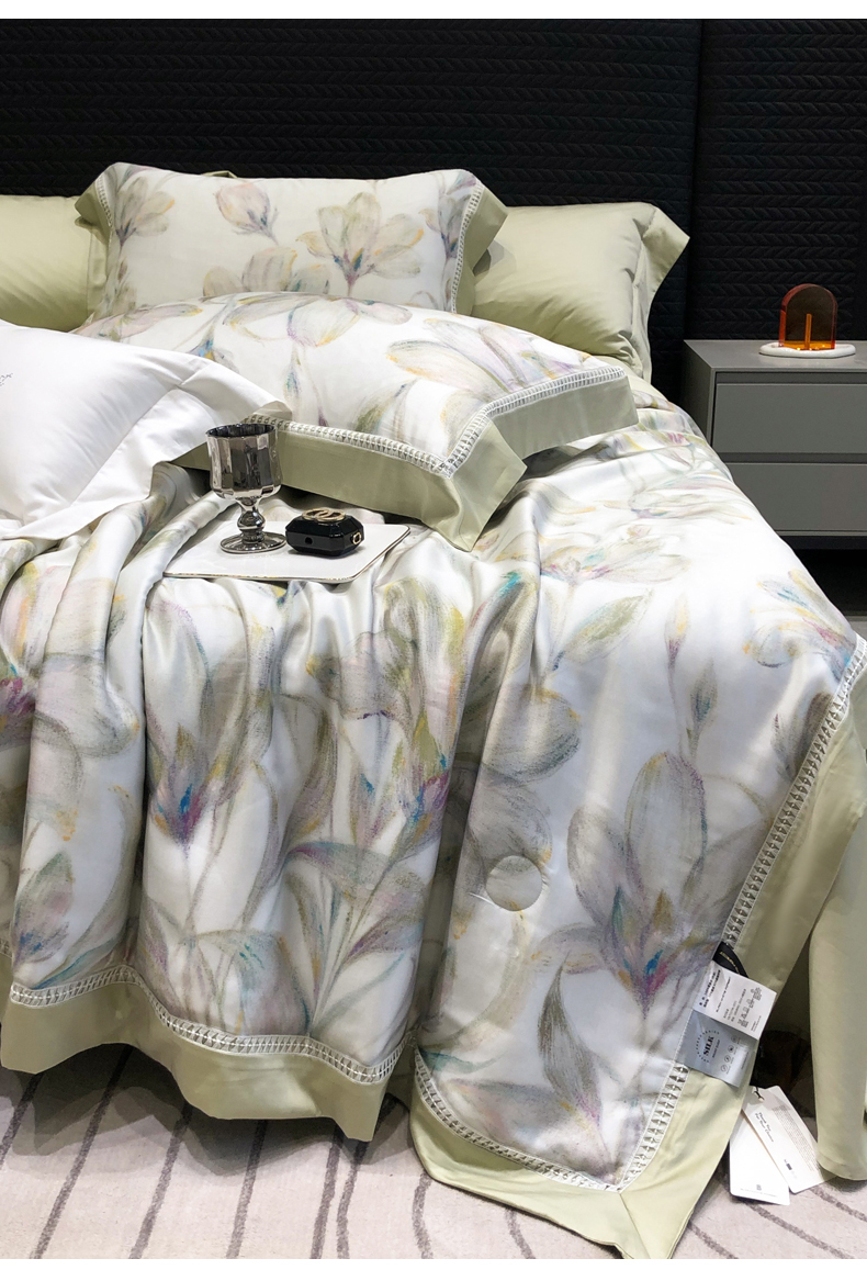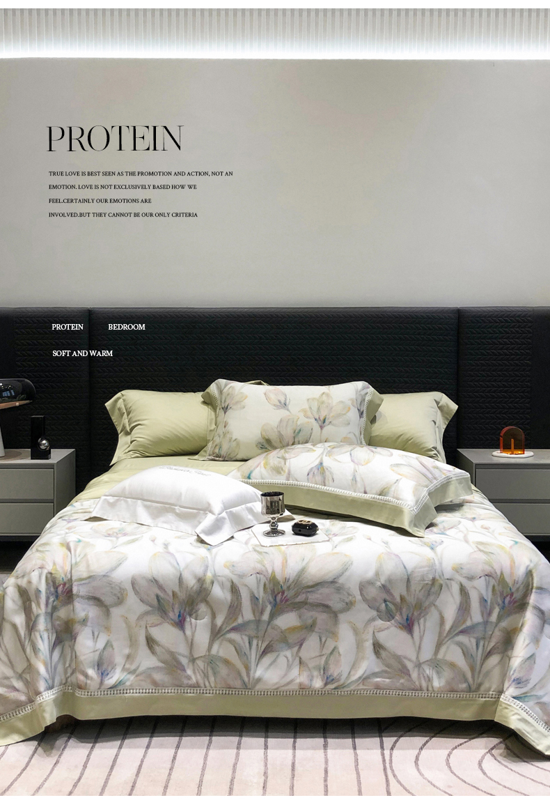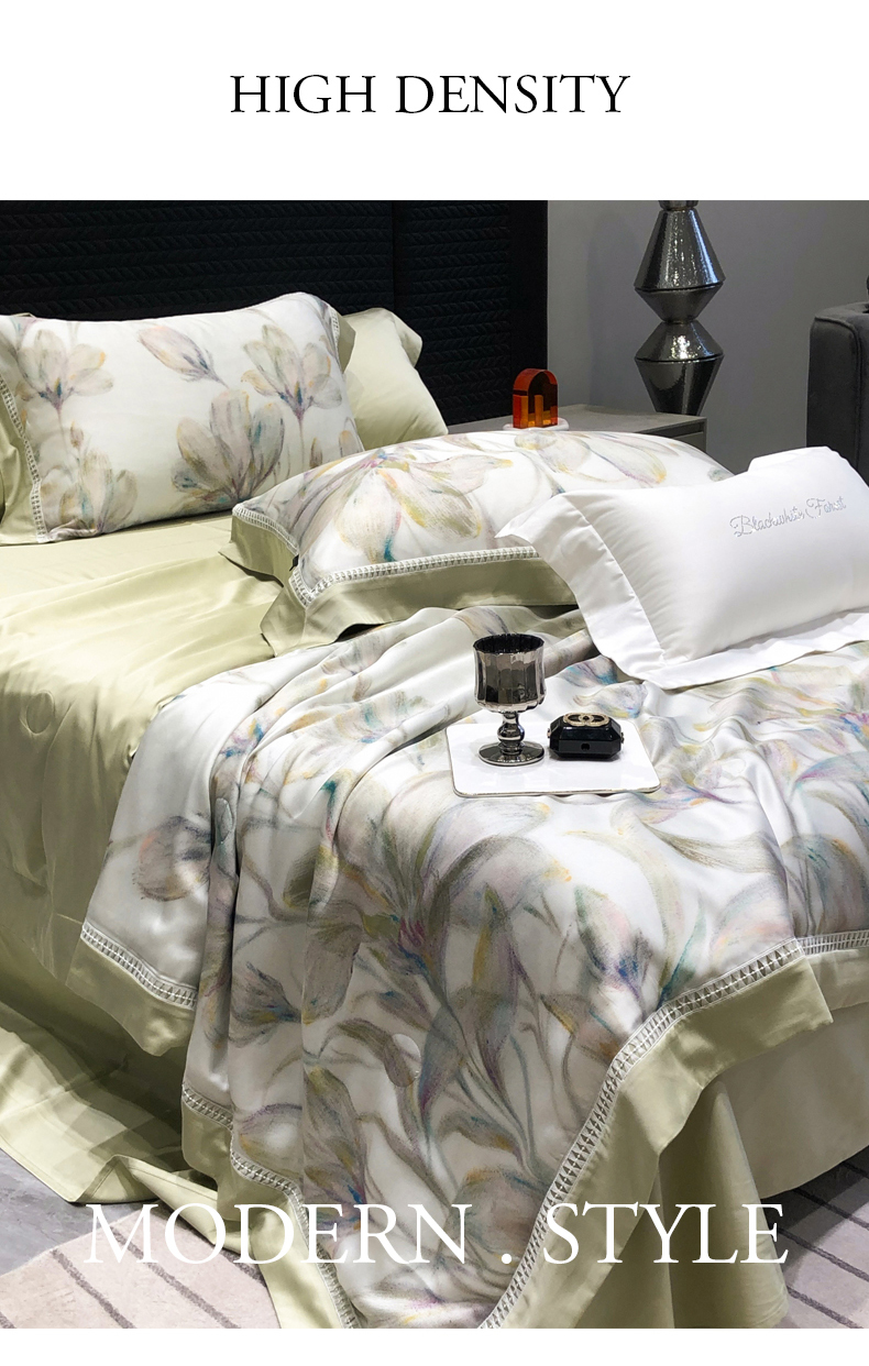 当前位置: 91家纺网 > 商品网购 > 床品套件 > 四件套 > 夏被四件套 > 黑白森林 2026新款天丝印花夏被四件套系列 未央-绿