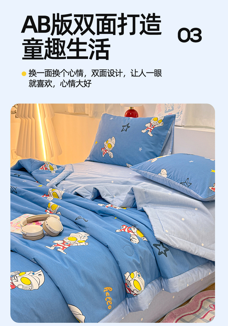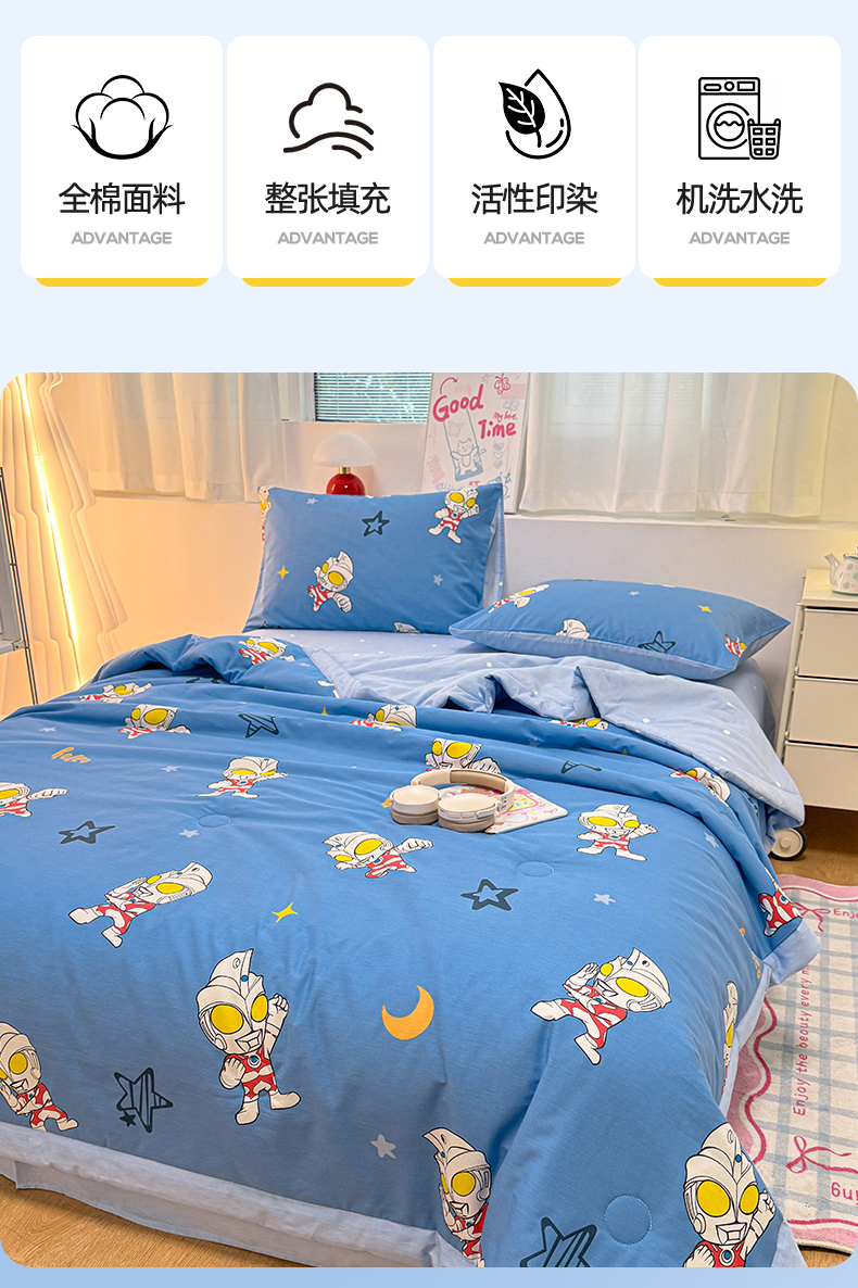 • 91家纺网 家纺一手货源 找家纺 名兮家居 2026新款正版授权经典奥特曼全棉夏被四件套【含防伪标】 全棉夏被-艾斯奥特曼