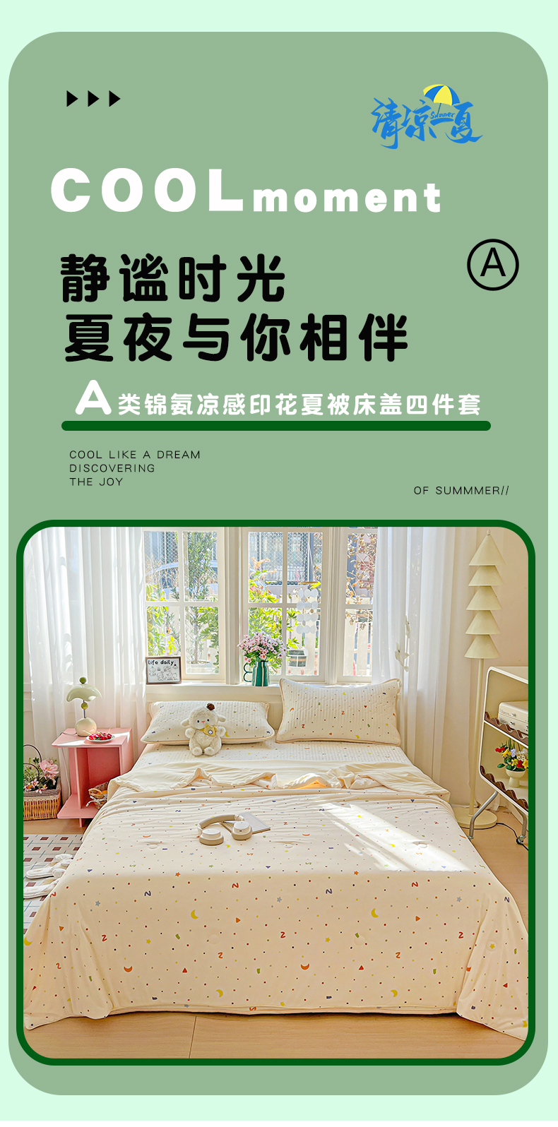 商品名称:(总)卡普二店 2026新款A类锦氨凉感印花夏被四件套床盖凉席款--四件套