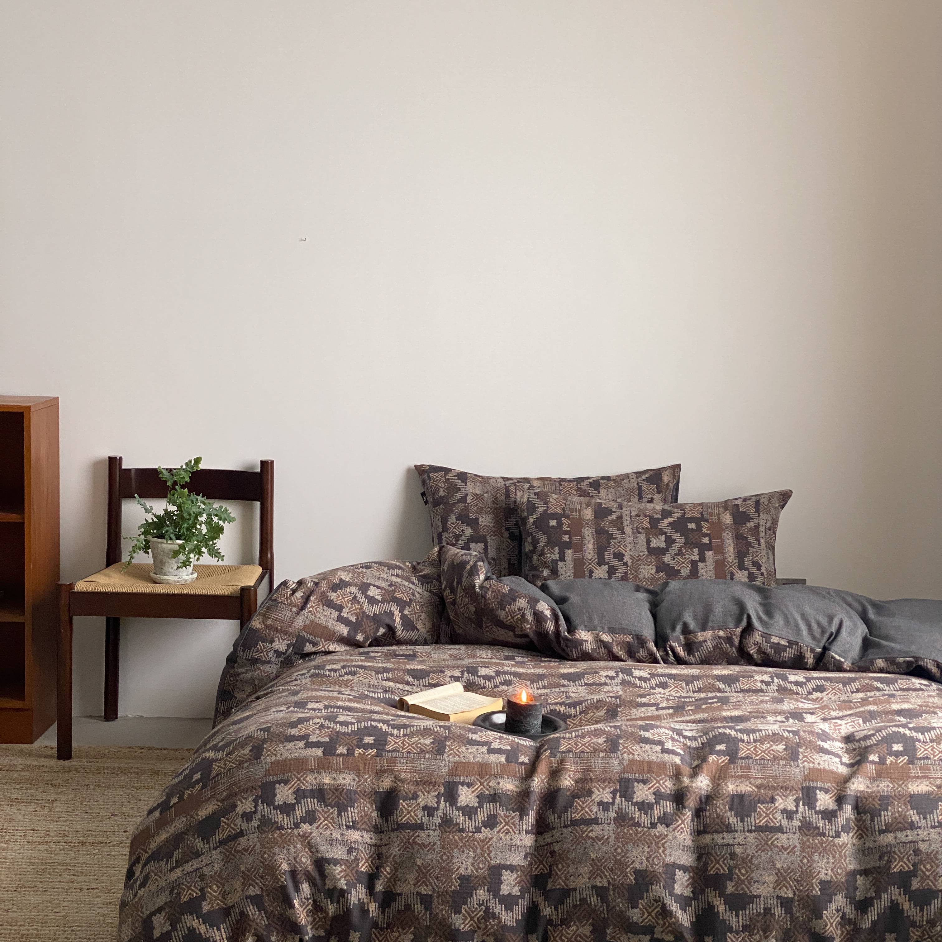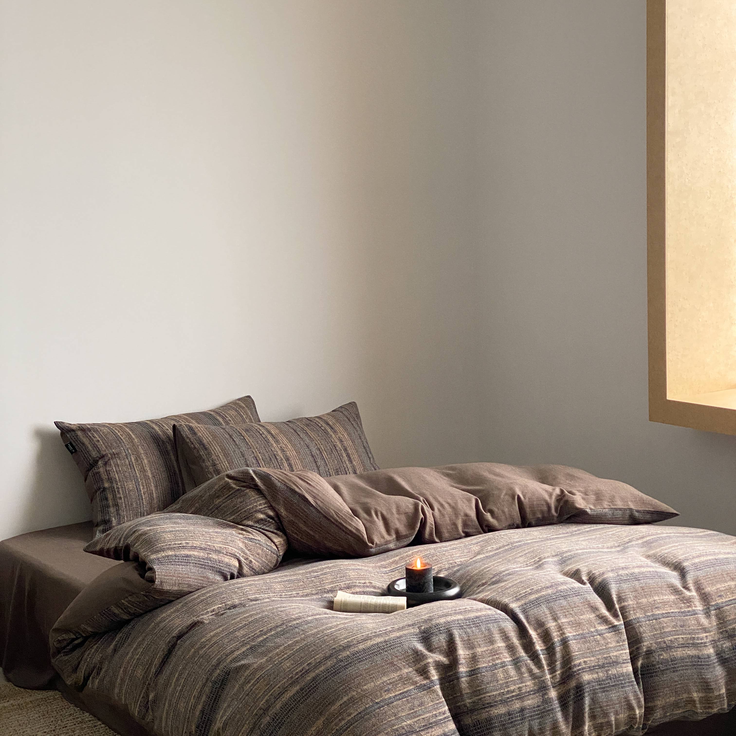 当前位置: 91家纺网 > 商品网购 > 床品套件 > 四件套 > 全棉普通四件套 > 旷野 2026新款复古风全棉纯棉色织提花双层纱四件套 墨染