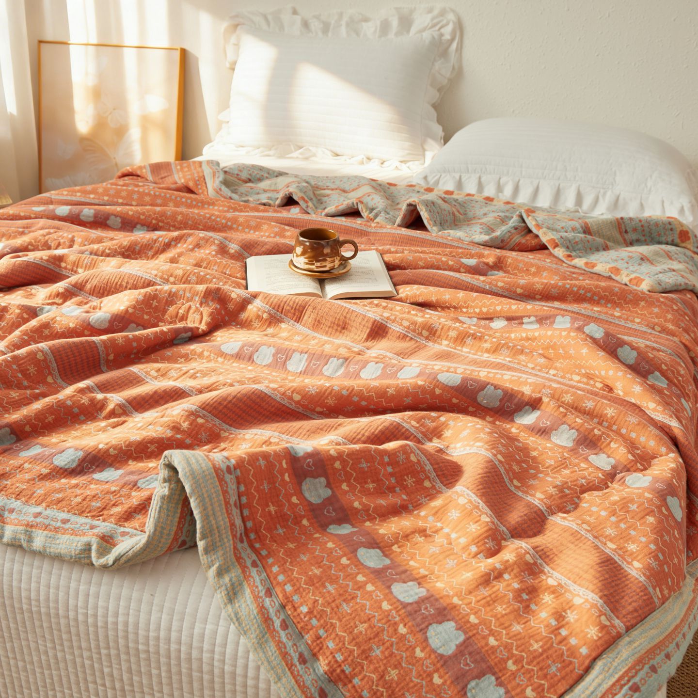 (总)睡棉坊 2026新款全棉色织提花双层纱夏被全棉夏凉被里外全棉天然棉花被,费尔岛兔-桔蓝,吉祥小马-粉,金语谣-紫黄,锦上添花-提夫尼蓝,山野来信-蜜粉绿,舞青春-桔