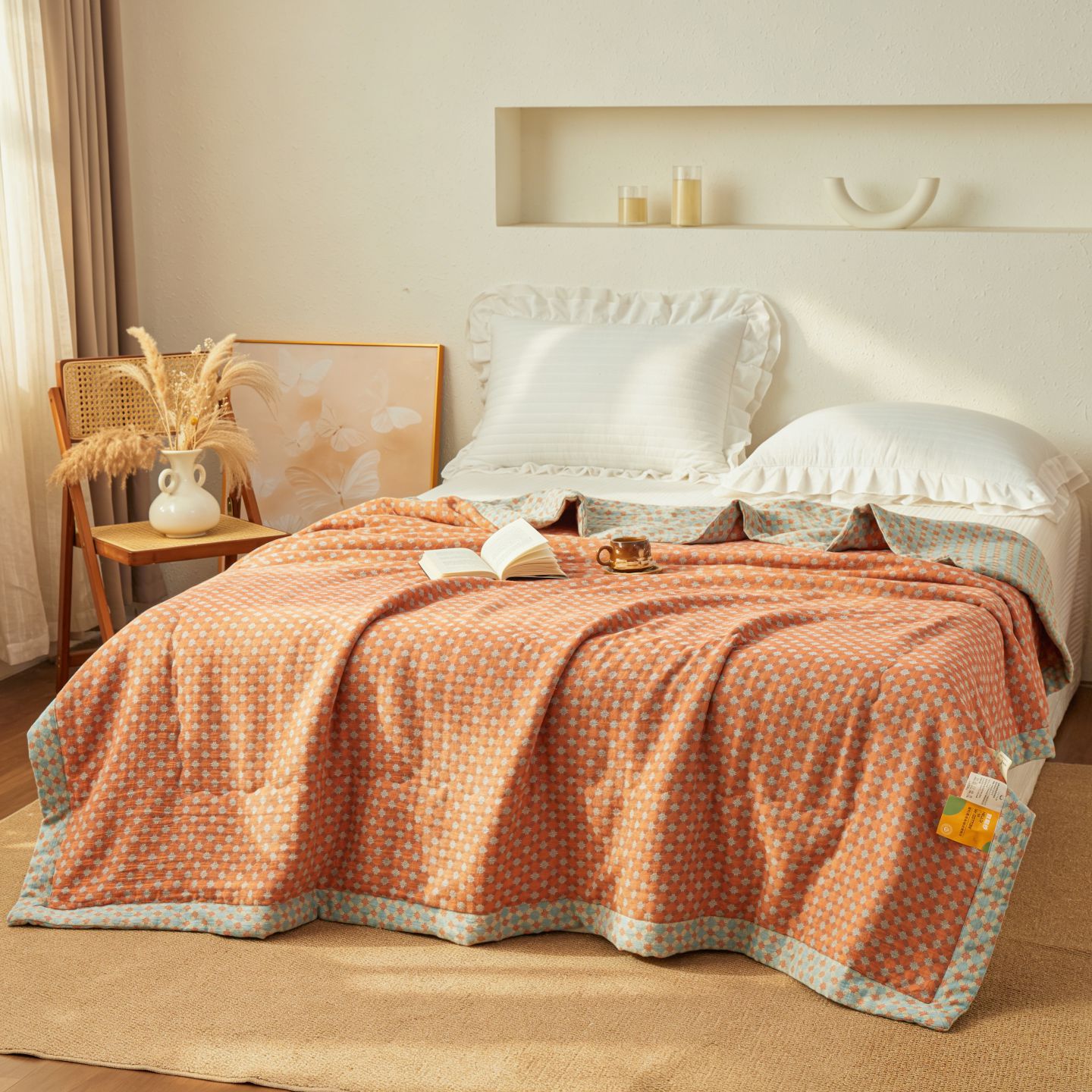 (总)睡棉坊 2026新款全棉纯棉色织提花双层纱冬被被子被芯,蝶结缘,雪梅