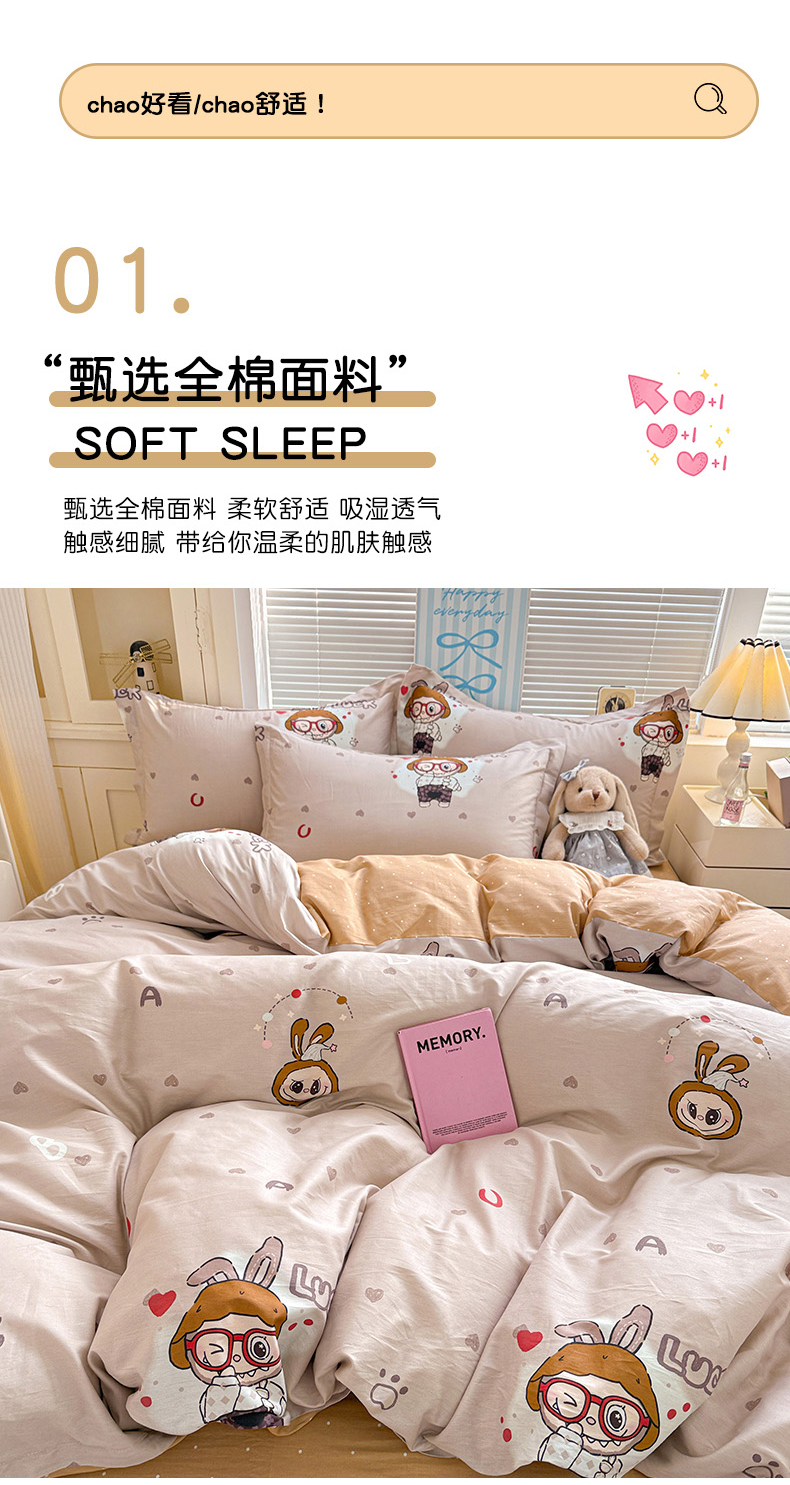 当前位置: 91家纺网 > 商品网购 > 床品套件 > 四件套 > 全棉普通四件套 > 董成龙家纺 2026春夏新款100%全棉纯棉印花四件套印花卡通系列三件套(喷气工艺) 仙草悠悠