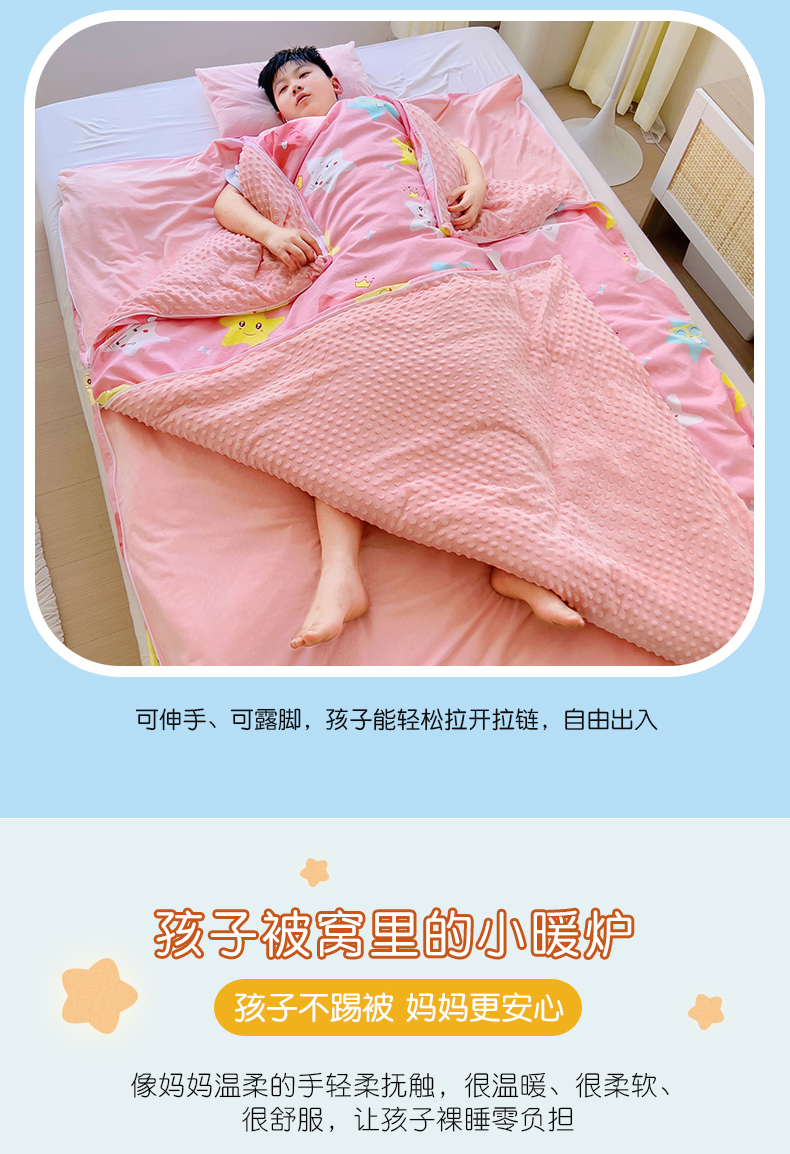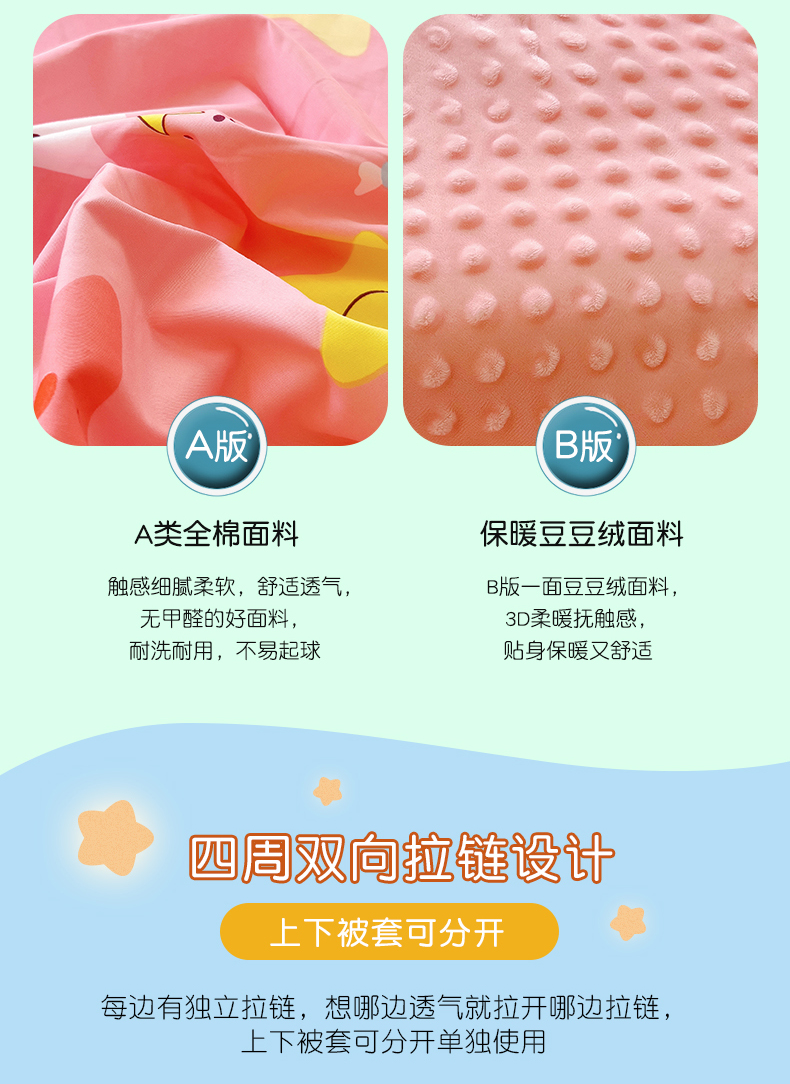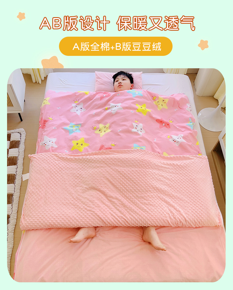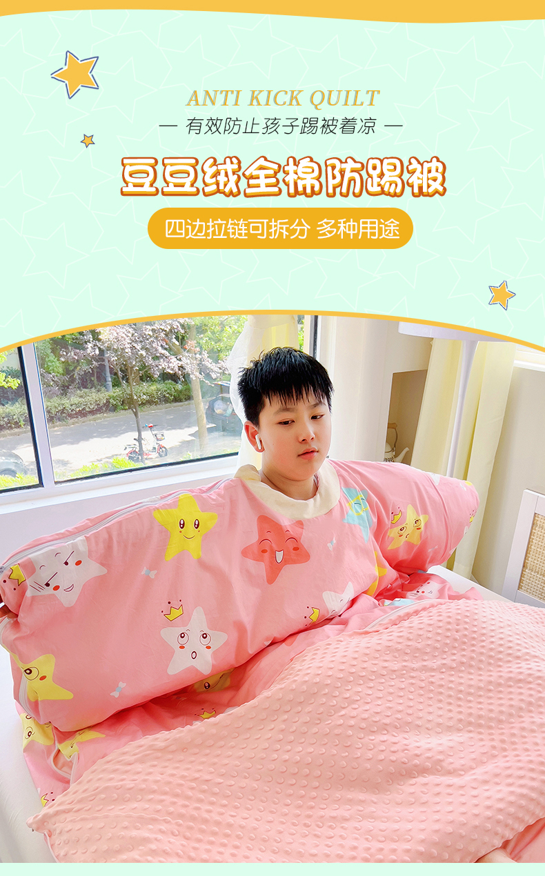 • 91家纺网 家纺一手货源 找家纺 萌朵家纺 2025新款豆豆绒全棉防踢被-结合牛奶绒绒防踢被 满天星