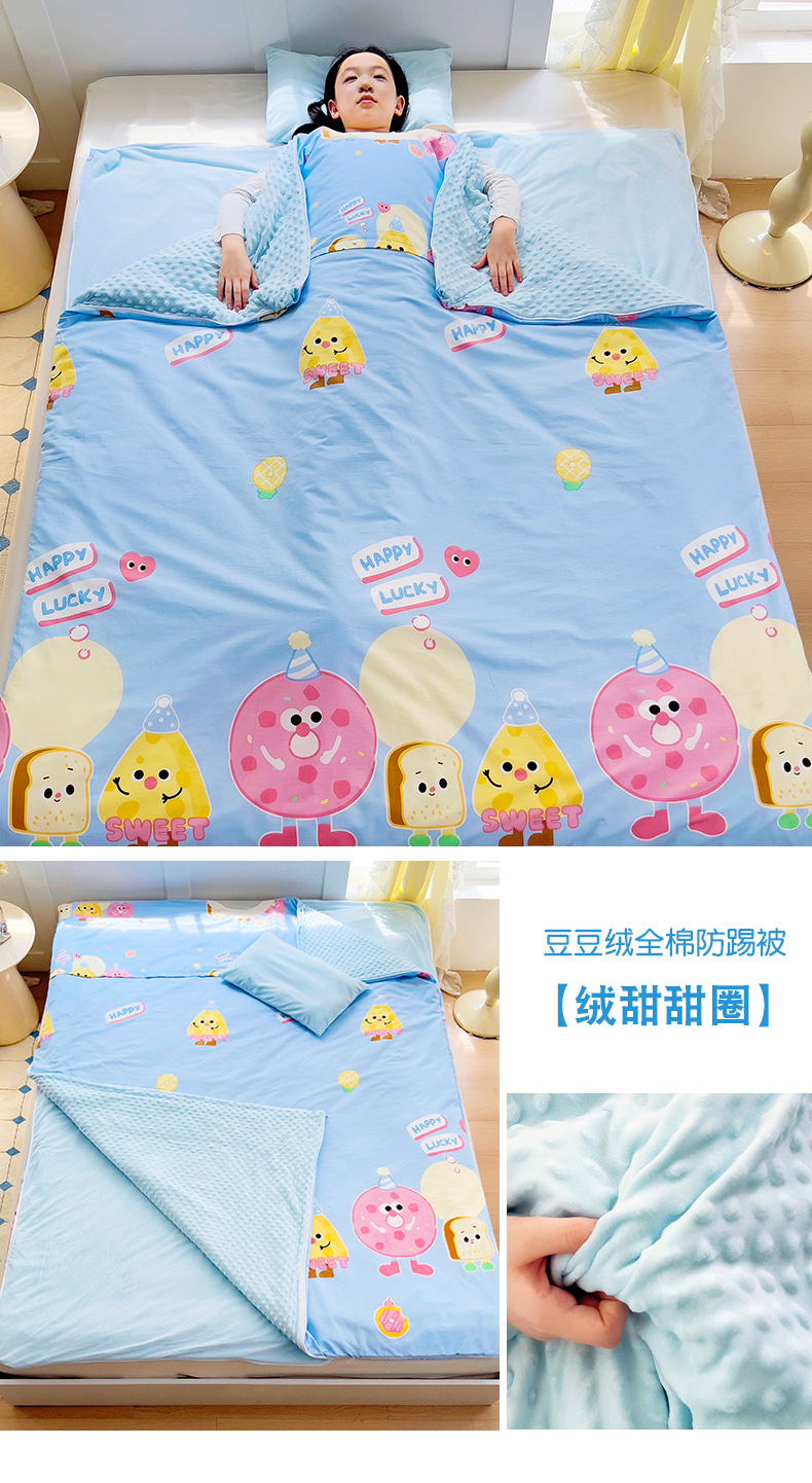 萌朵家纺 2025新款豆豆绒全棉防踢被-结合牛奶绒绒防踢被 甜甜圈,甜甜圈