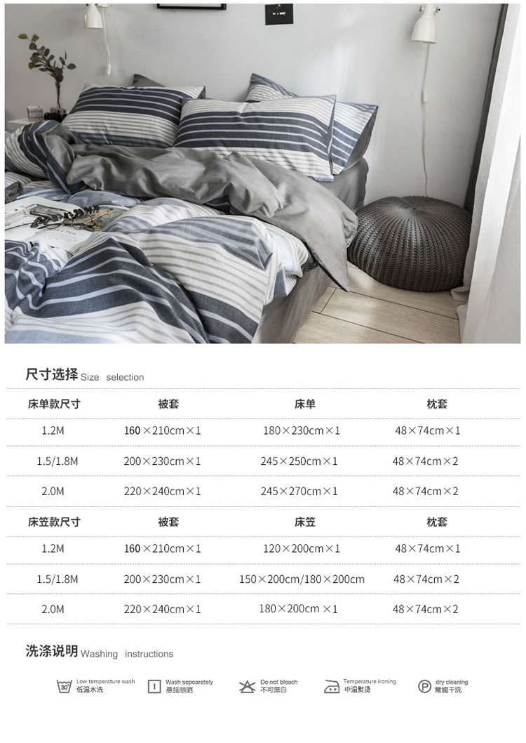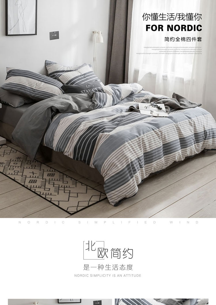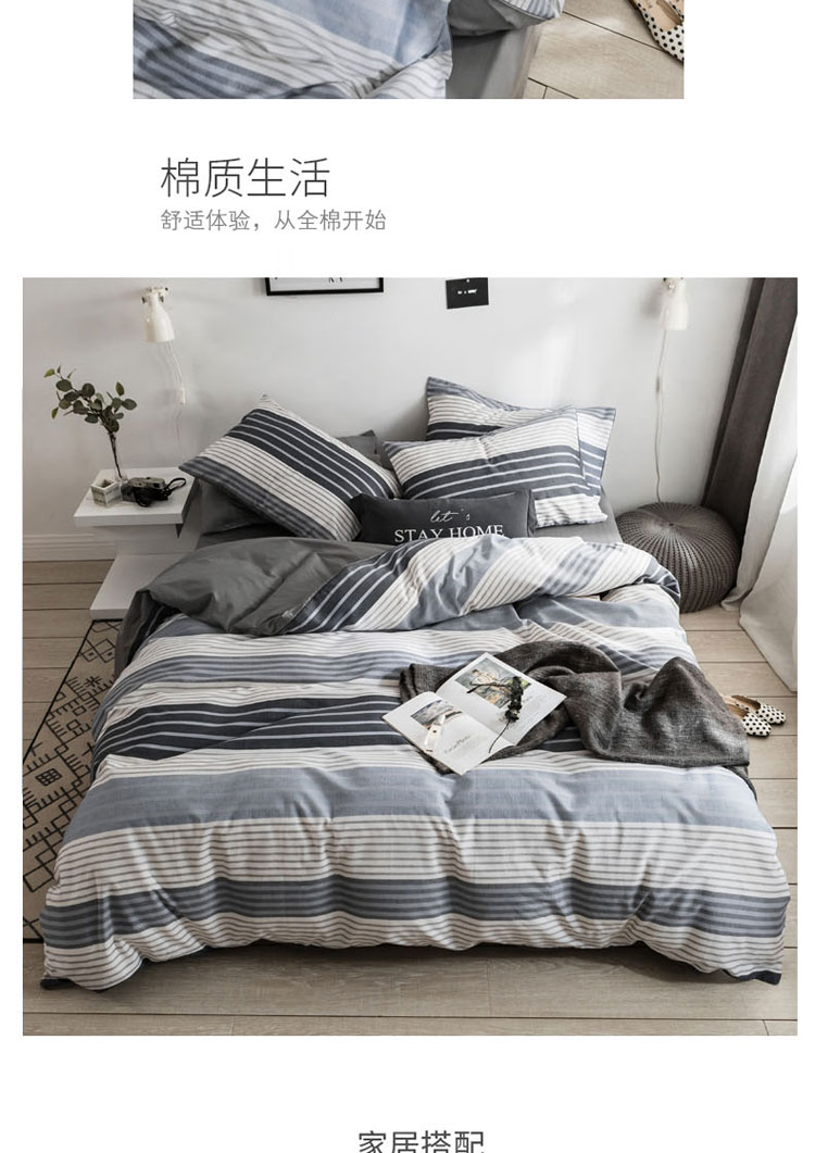 (总)梦家居 2024新款全棉13372简约小清新四件套,彩虹条纹,墨竹—黑色,墨竹—米色