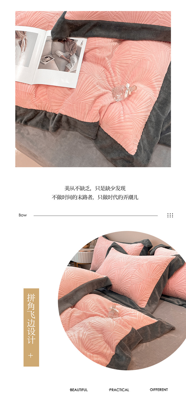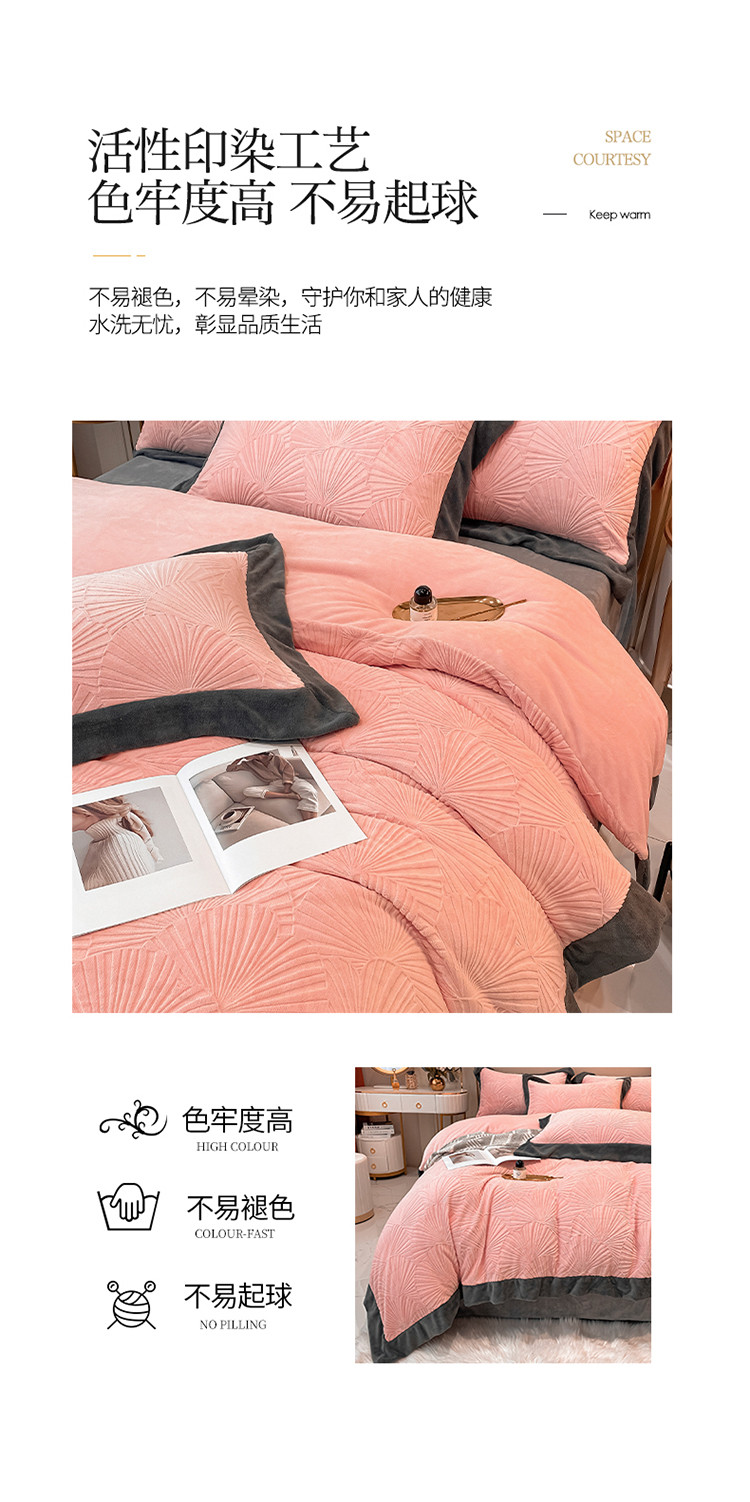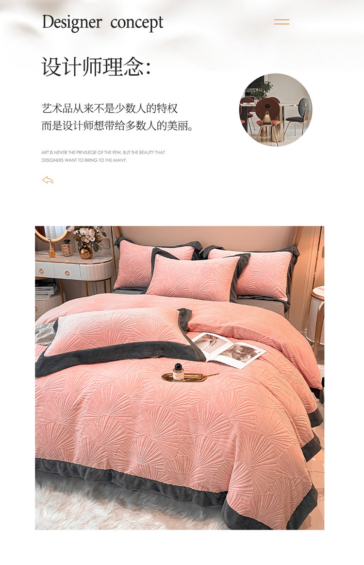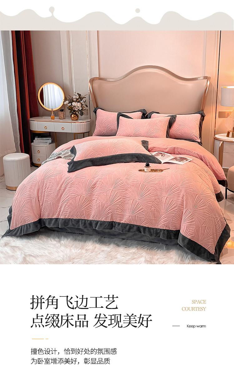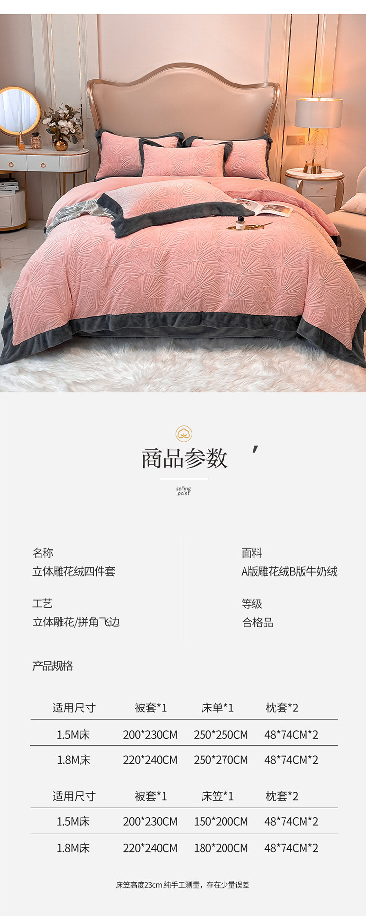 商品名称:吾秀 2021秋冬新款银杏雕花绒四件套 杏叶玉