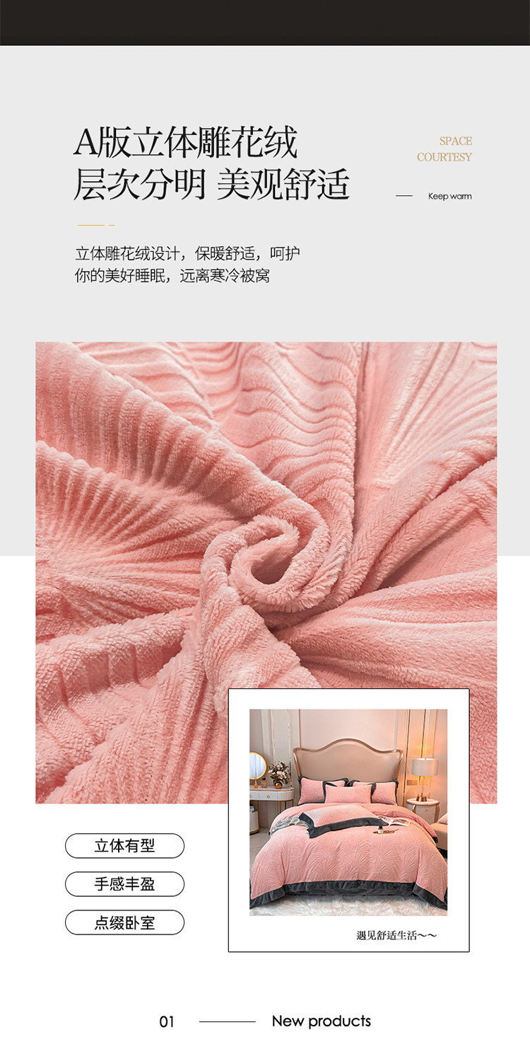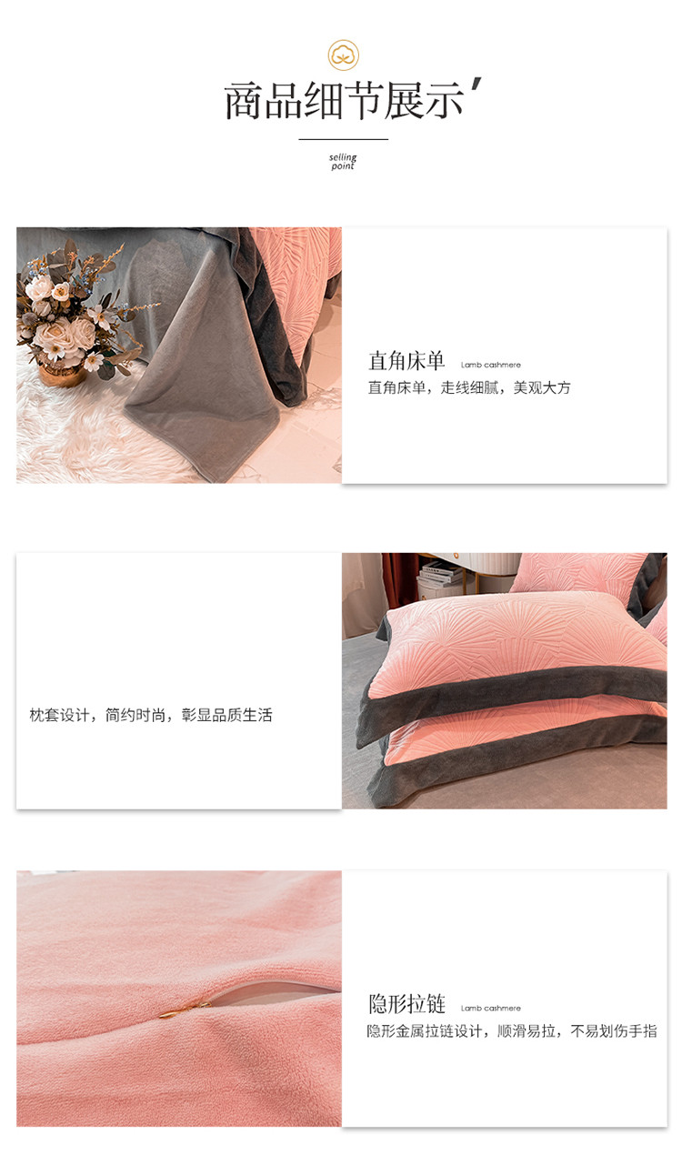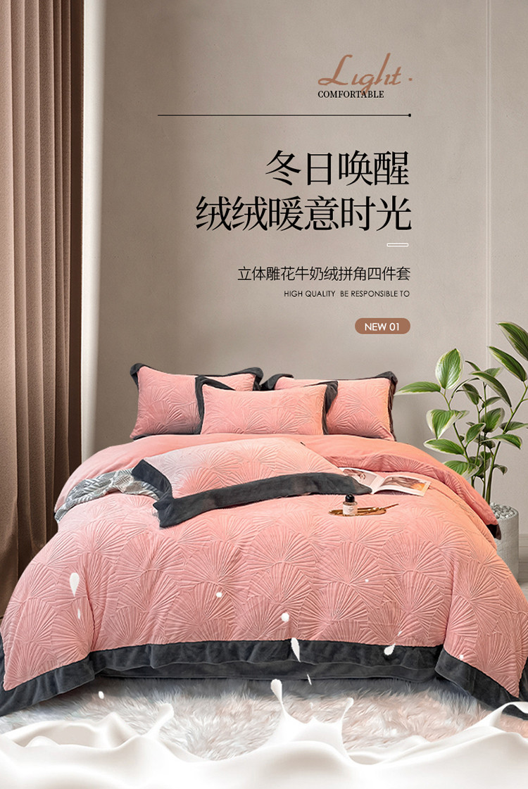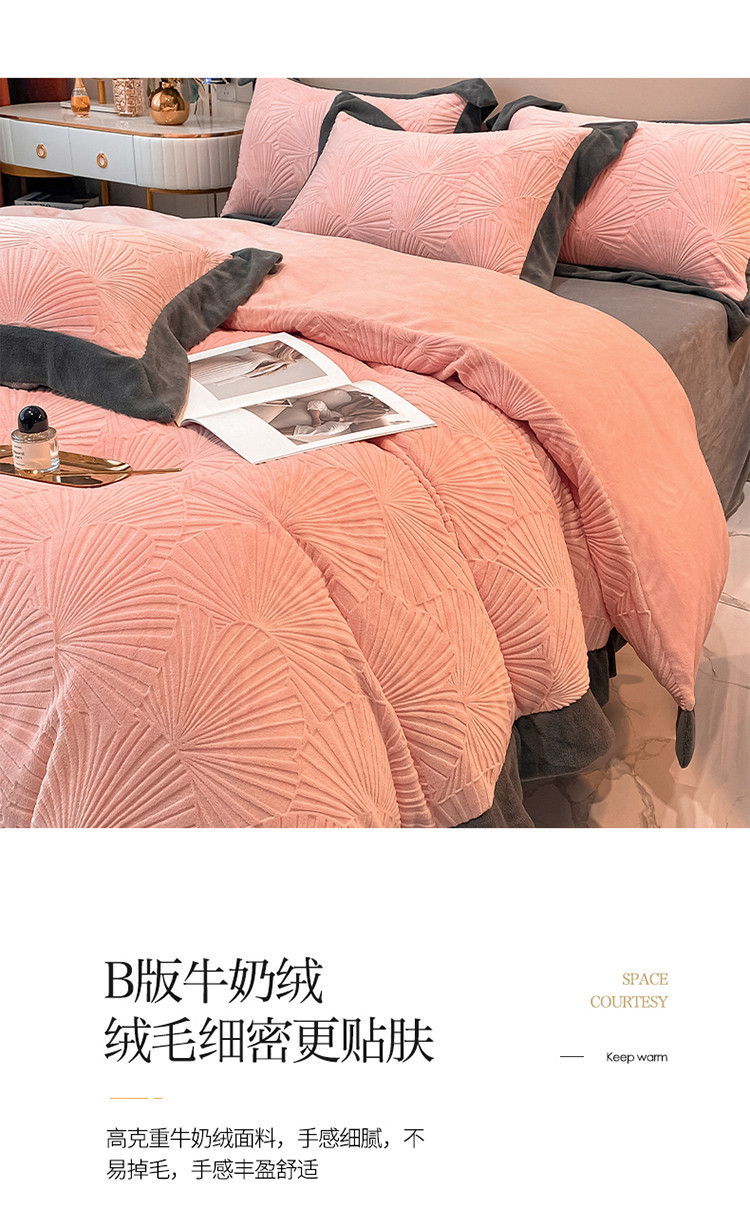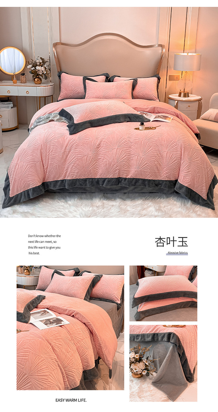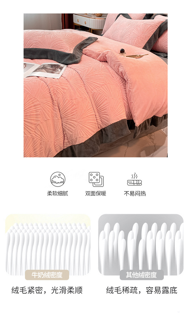 商品名称:吾秀 2021秋冬新款银杏雕花绒四件套 杏叶玉