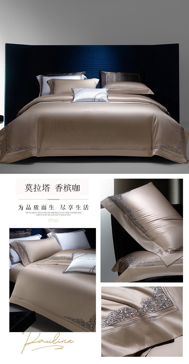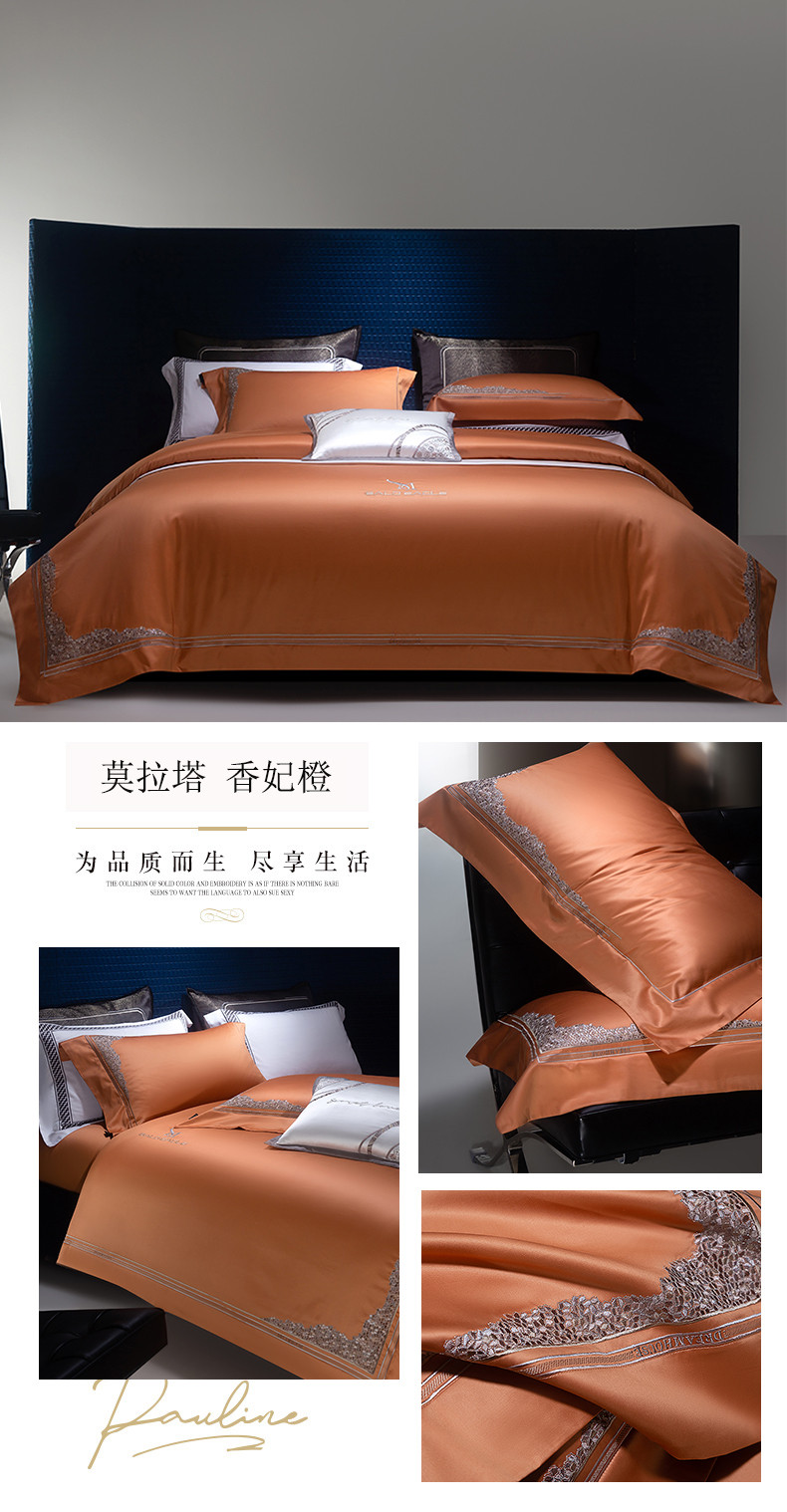 (总)诗黛尔 2025秋冬新款长绒棉刺绣香缇卡系列四件套,卡其色,落樱粉,南瓜橘,绅士灰,水晶兰,油果绿