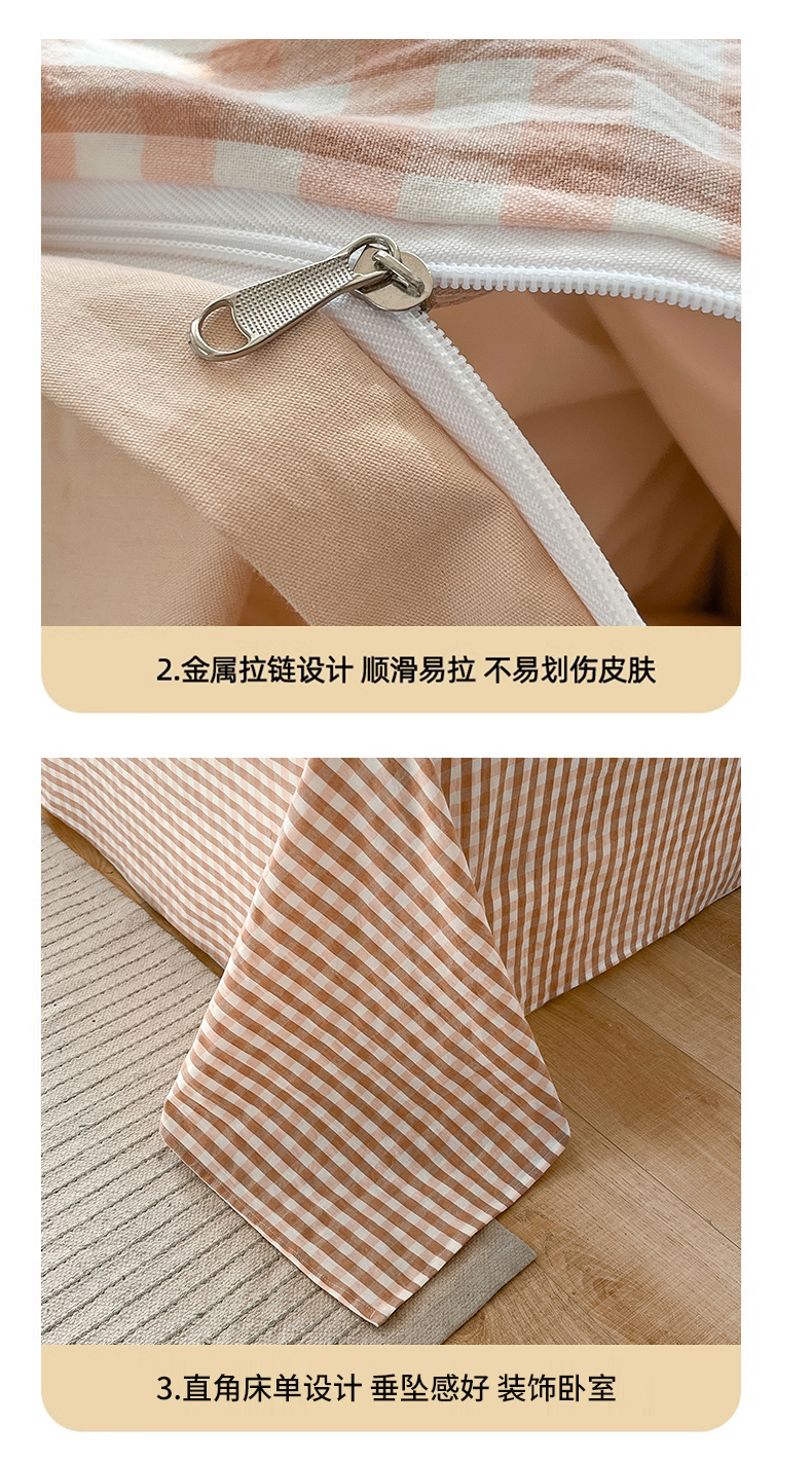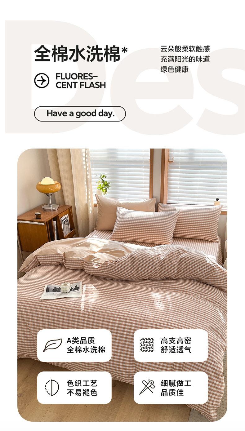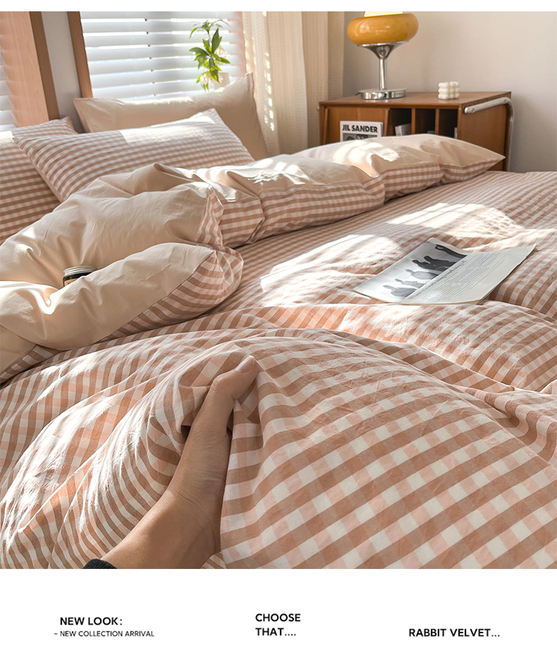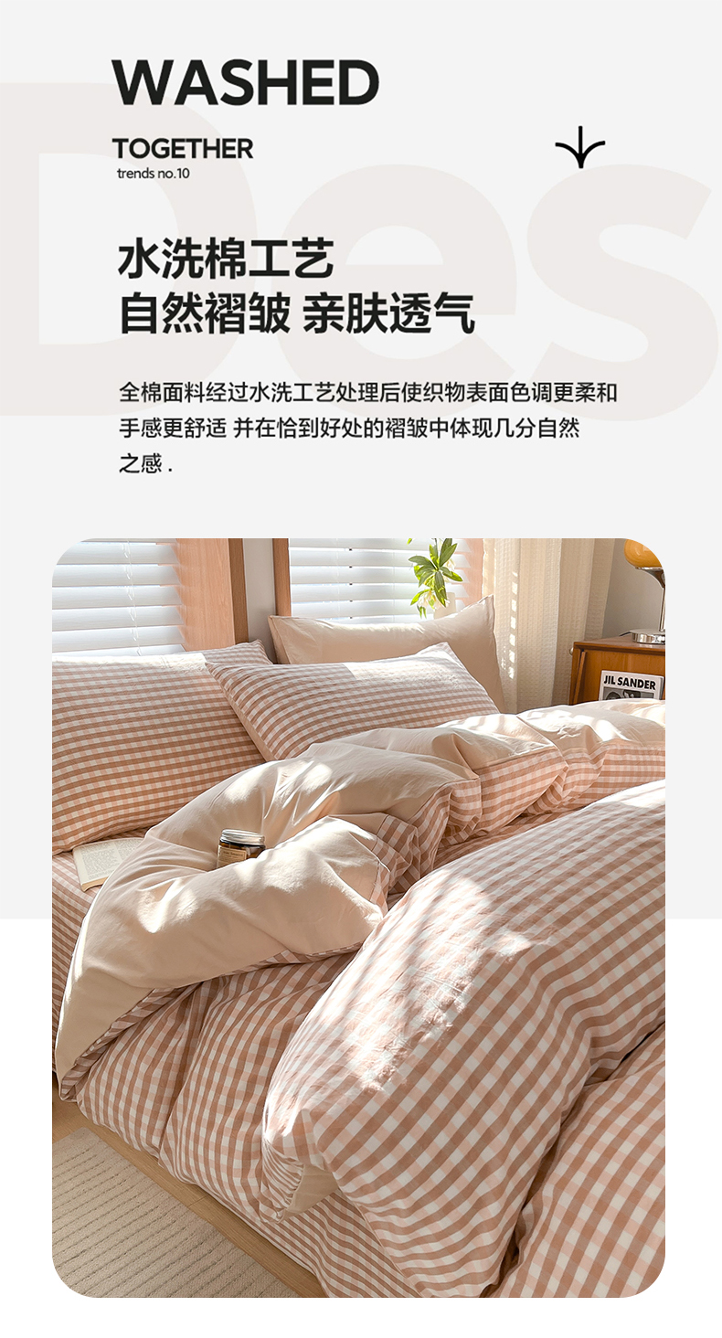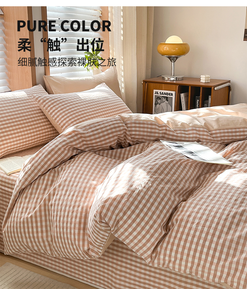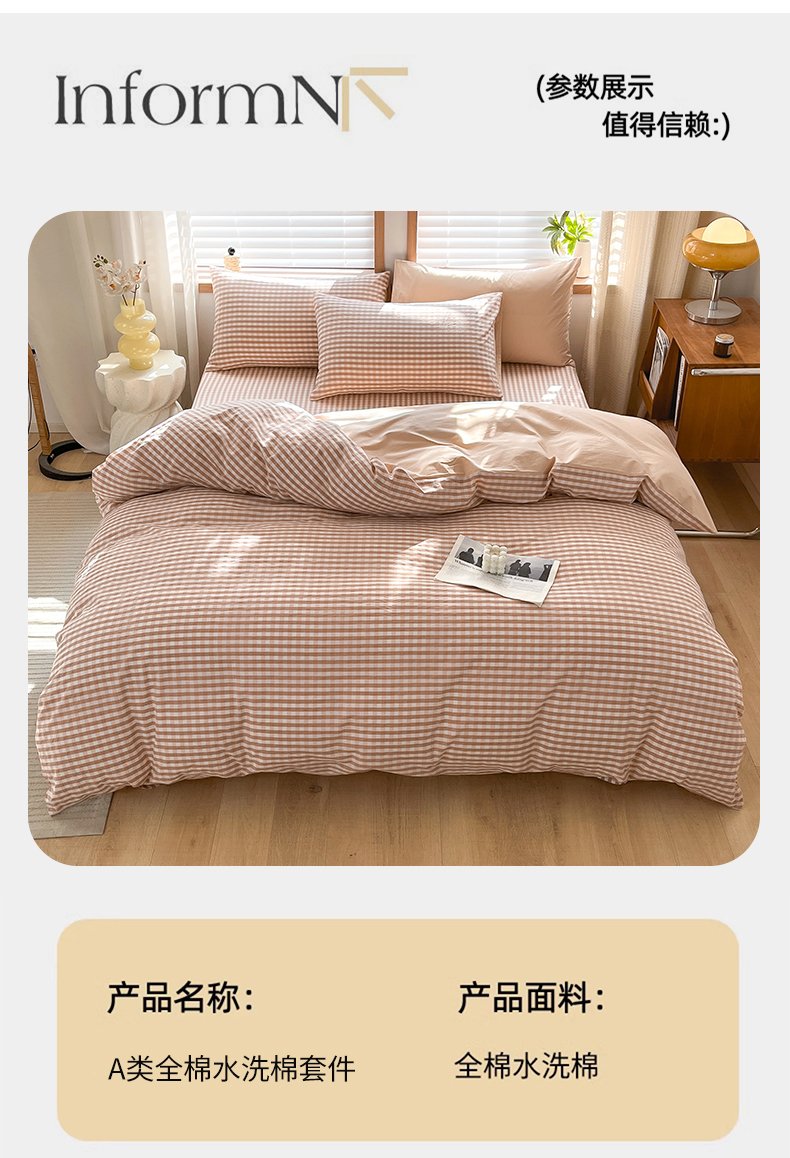 启程家纺 2026新款全棉A类水洗棉多规格四件套单品-四件套 粉小格