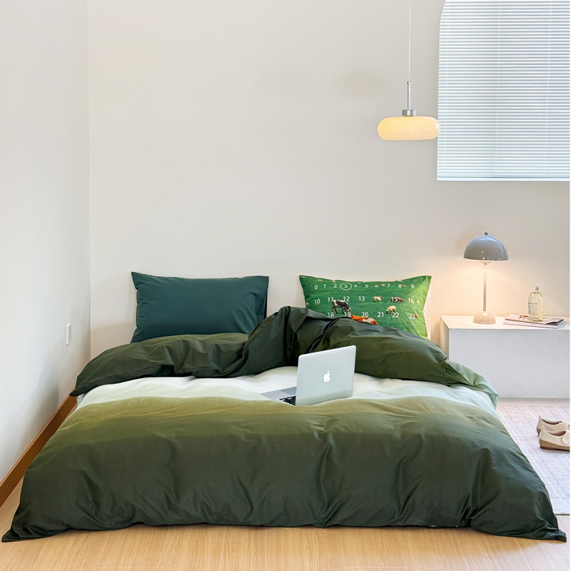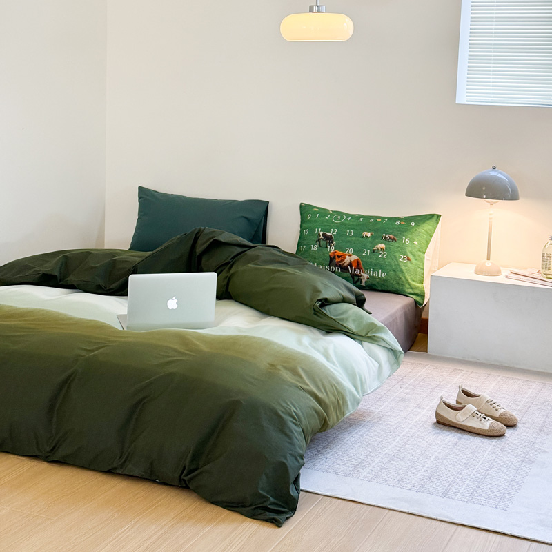 当前位置: 91家纺网 > 商品网购 > 床品套件 > 四件套 > 全棉普通四件套 > 艾沁家纺 2024新款40支全棉渐变色混搭四件套 渐变绿