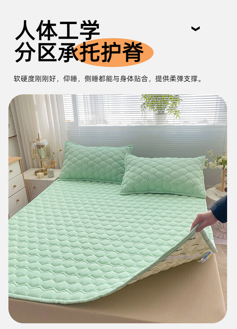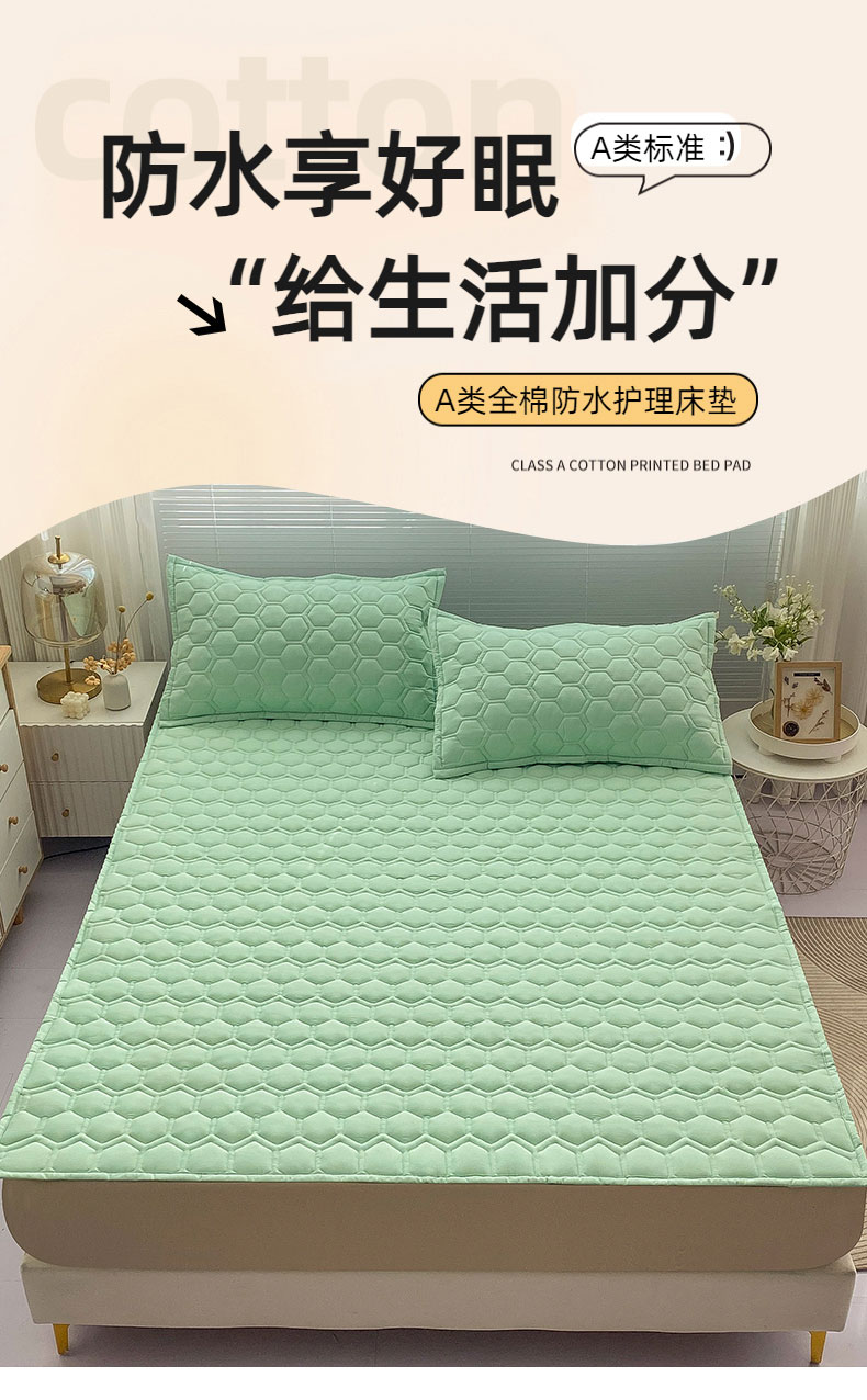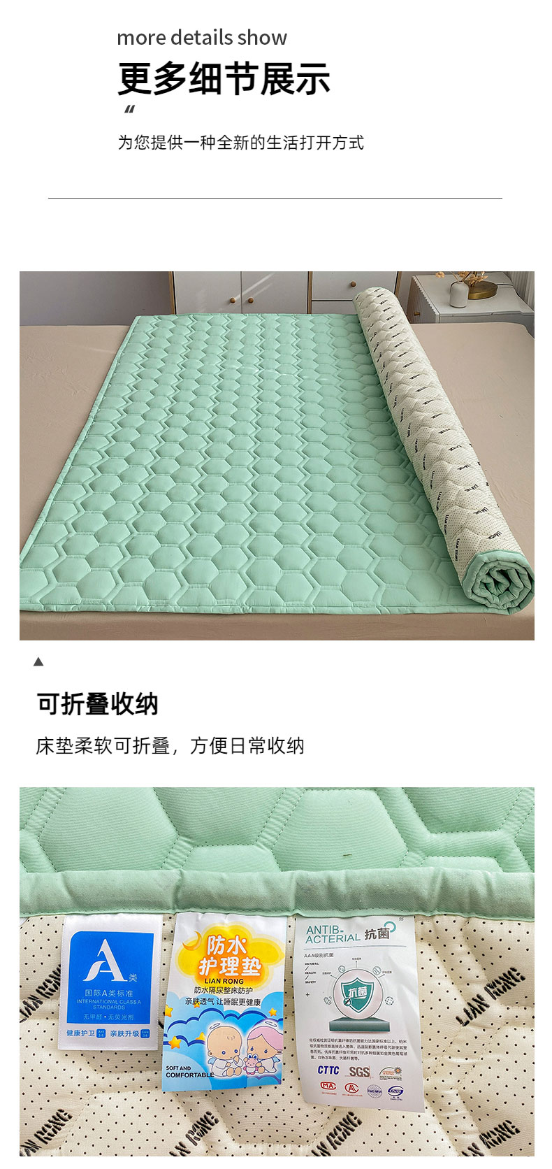 商品名称:恋绒家纺 2025新款A类纯棉(隔尿 防水)抗菌软床垫 薄荷绿
