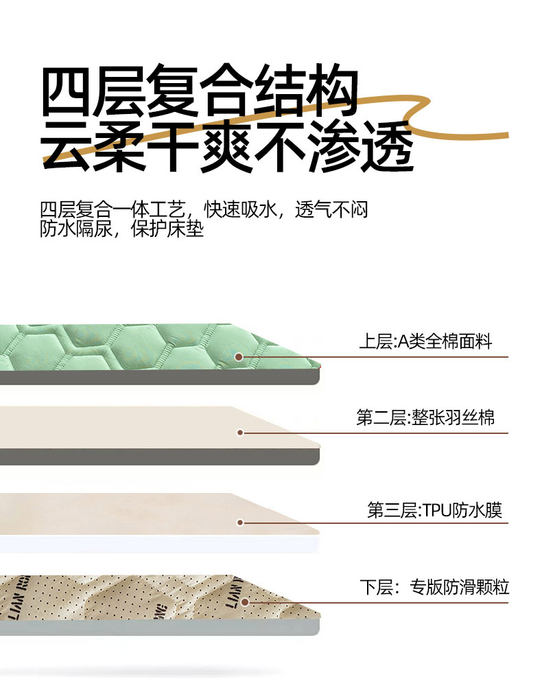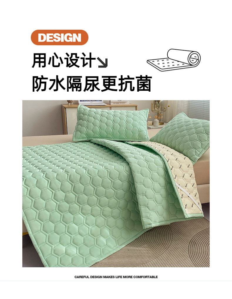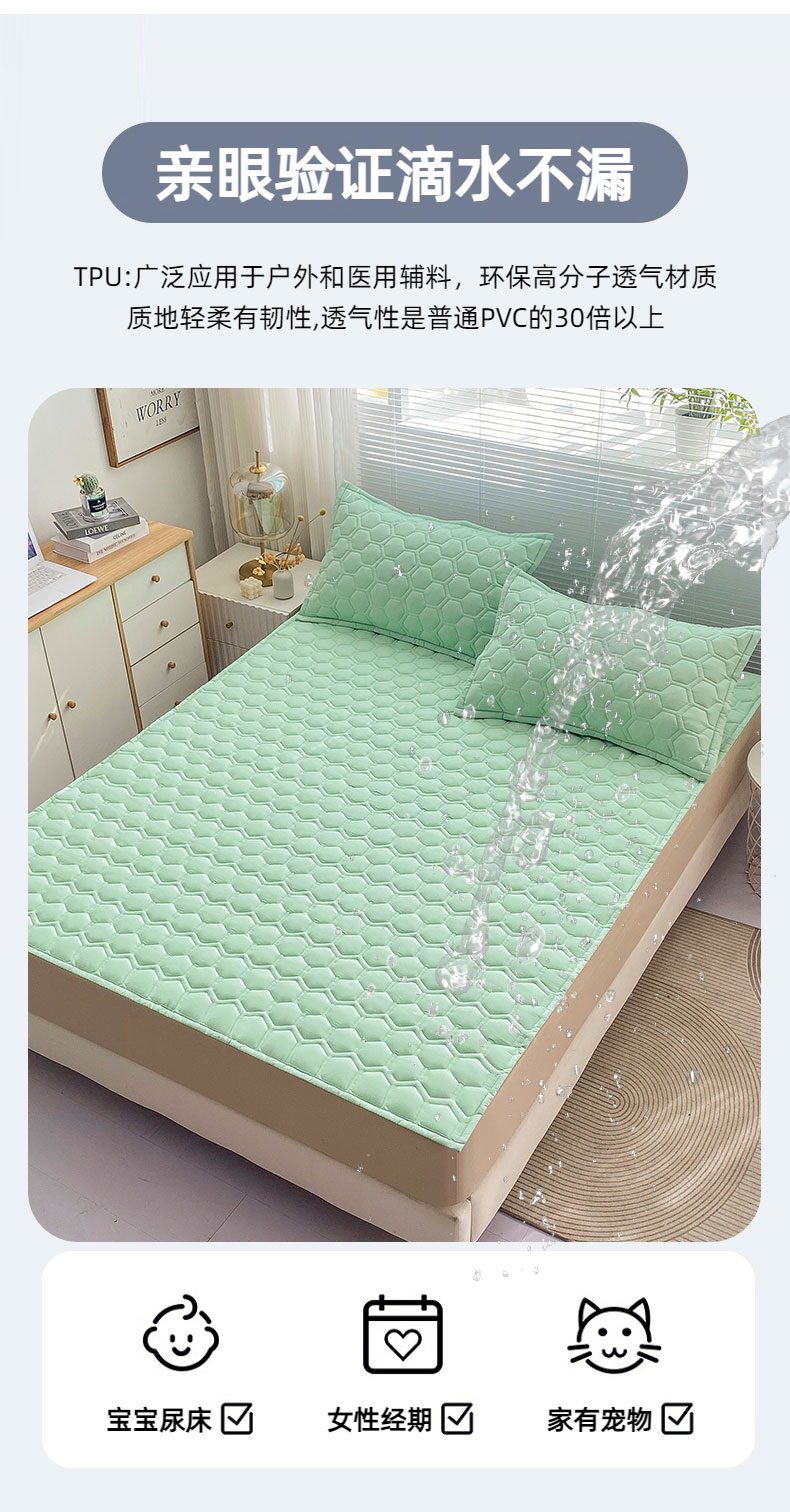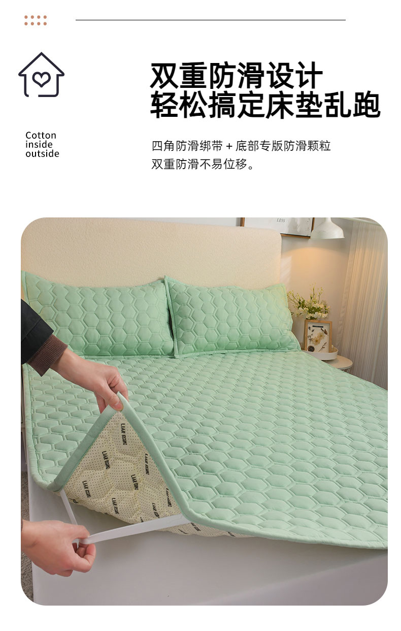 商品名称:恋绒家纺 2025新款A类纯棉(隔尿 防水)抗菌软床垫 薄荷绿