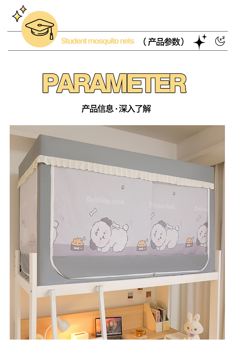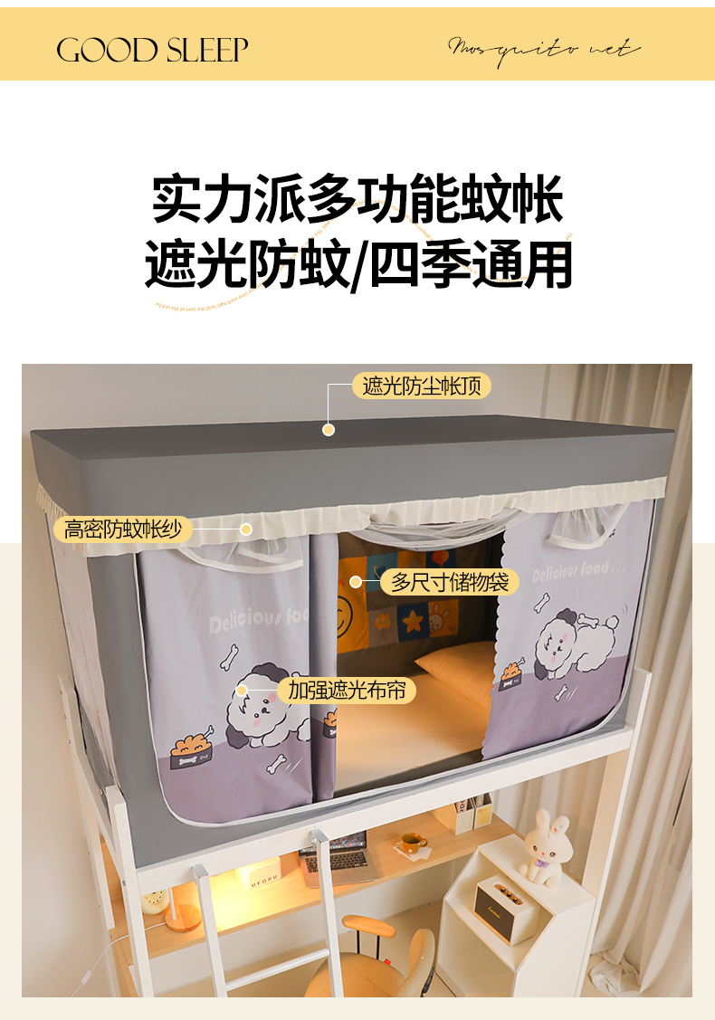 当前位置: 91家纺网 > 商品网购 > 床上用品 > 蚊帐 > 学生蚊帐 > 梦精灵家纺 2025新款强遮光防蚊学生蚊帐 上铺 90*190*110免拼接支架 初夏-皮皮狗