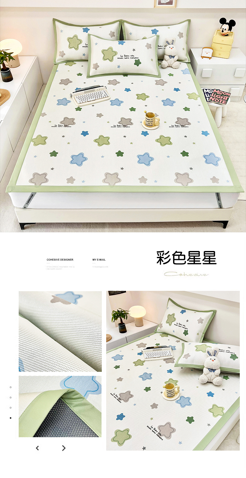 当前位置: 91家纺网 > 商品网购 > 床上用品 > 凉席 > 藤席 > 全季家居 2024新款5A抗菌小清新数码印花冰藤席 彩色星星(床席款)