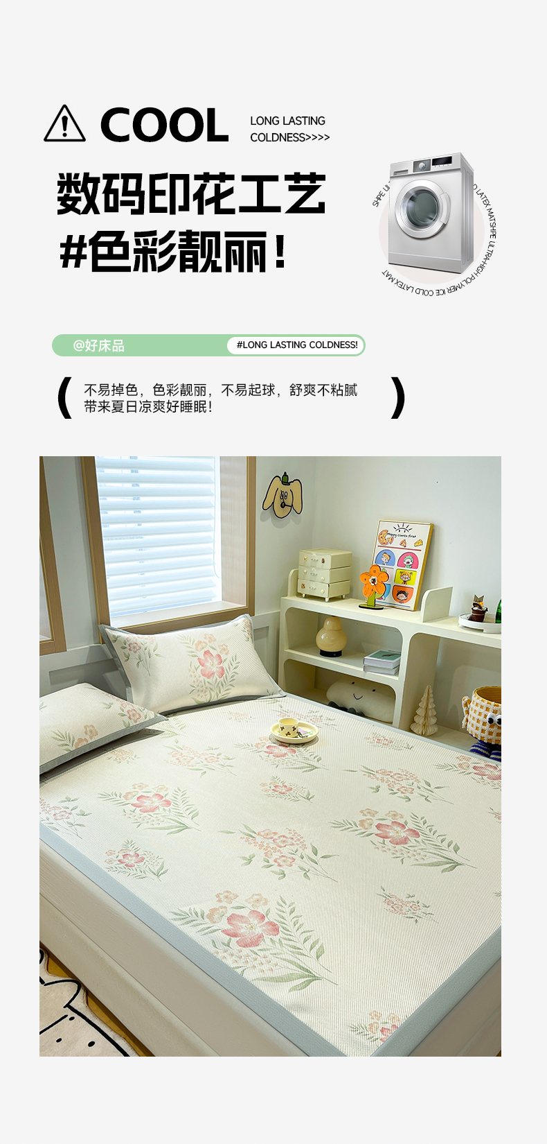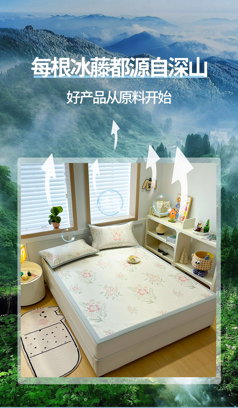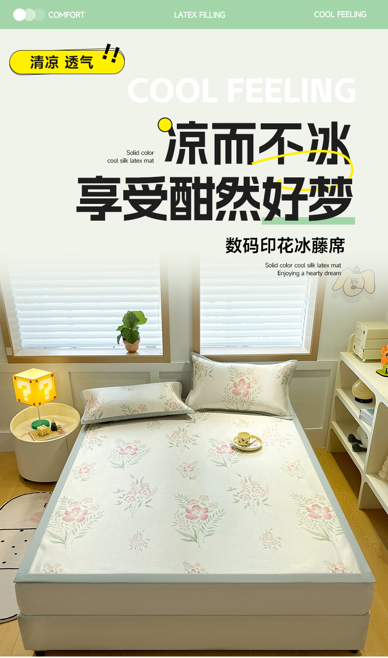 商品名称:佰亿莱 2024新款数码印花冰藤席 暗香粉