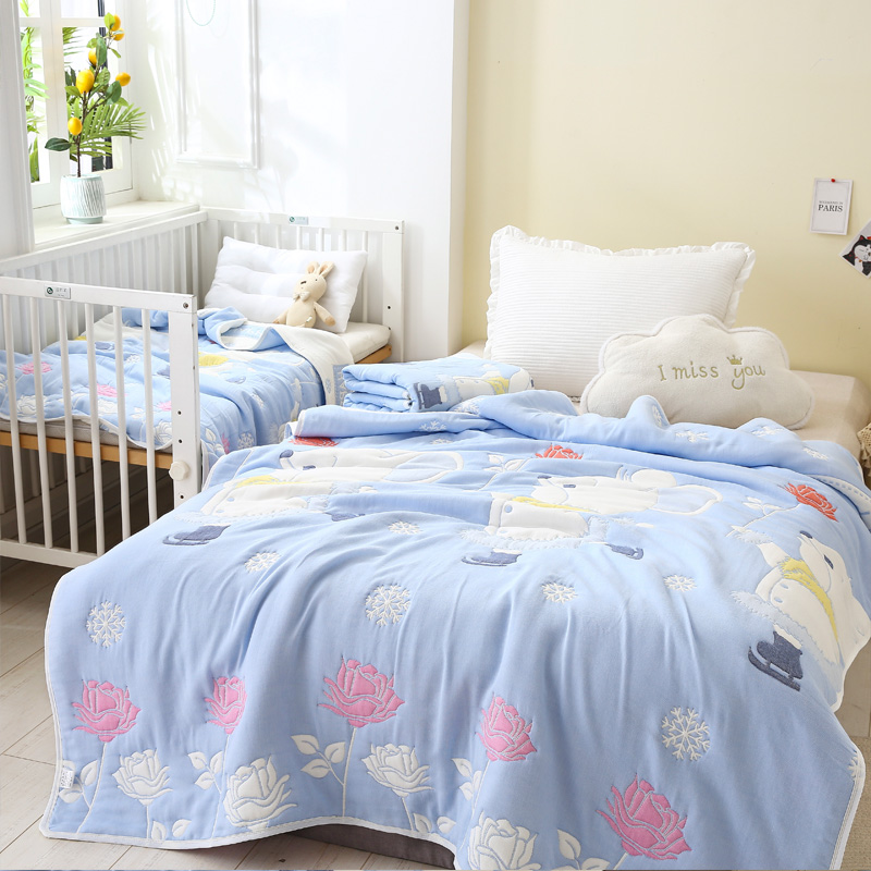 商品名称:朴尔家纺-毛巾被 2024年全棉十层纱布加厚儿童盖被毛巾被 溜冰鼠兰