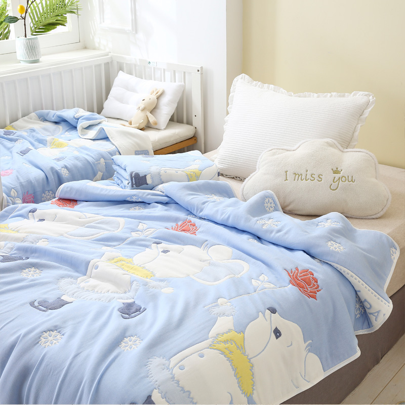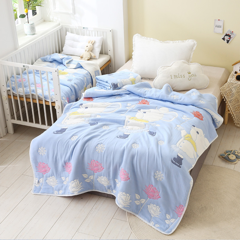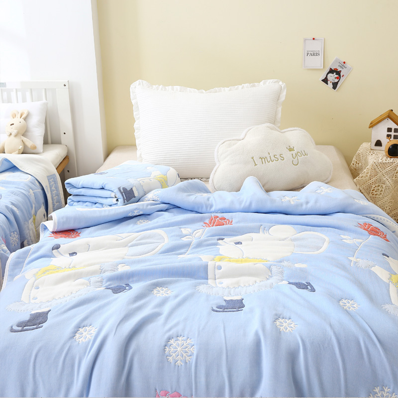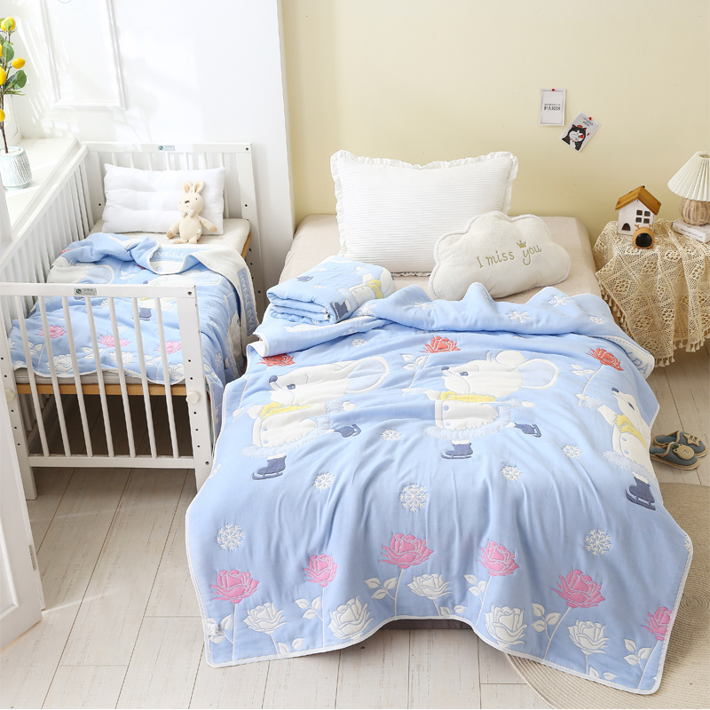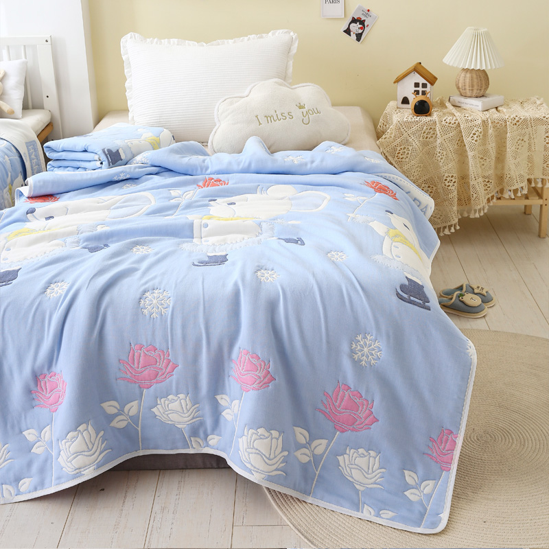 朴尔家纺-毛巾被 2024年全棉十层纱布加厚儿童盖被毛巾被 溜冰鼠兰