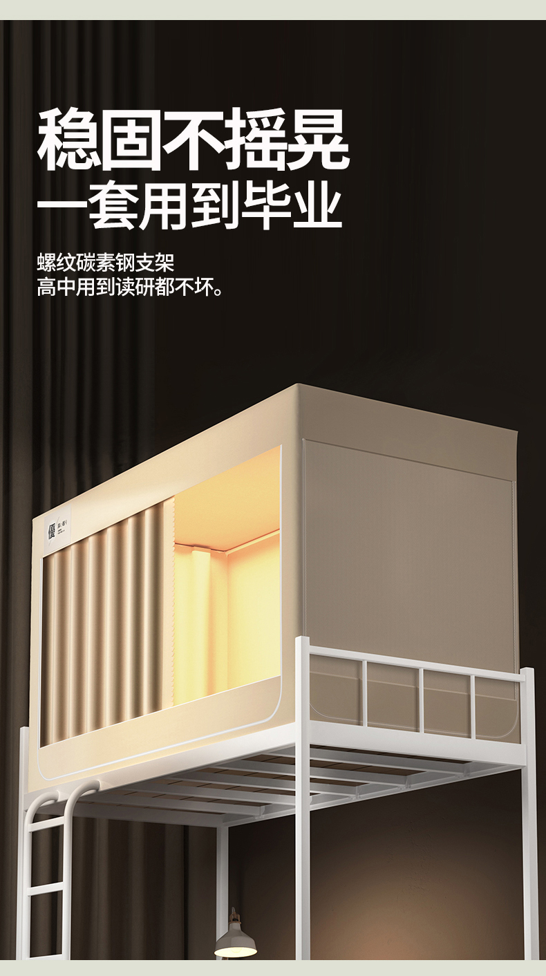 80*190*90cm(下铺单门)账纱+升级自连烤漆支架 +(三面帘遮光)