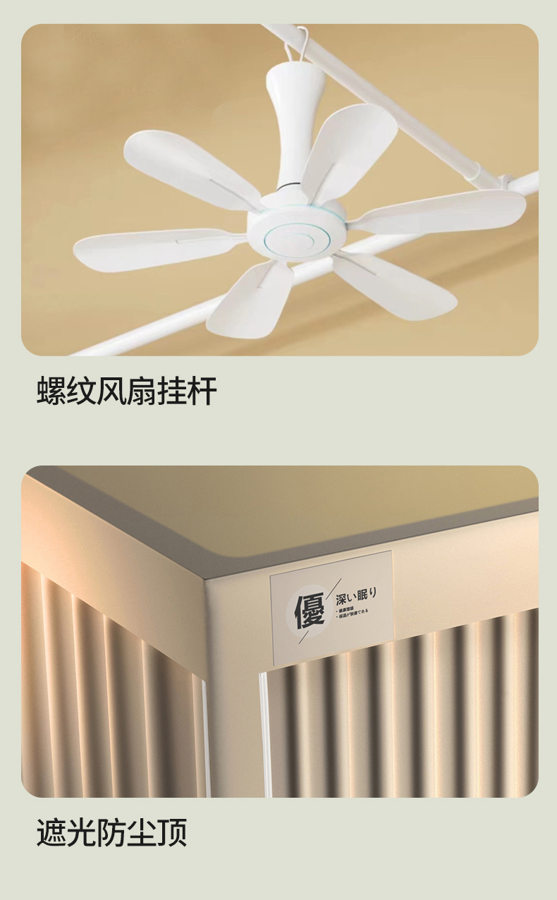 80*190*110cm(上铺三门)账纱+升级自连烤漆支架 +(三面帘遮光)