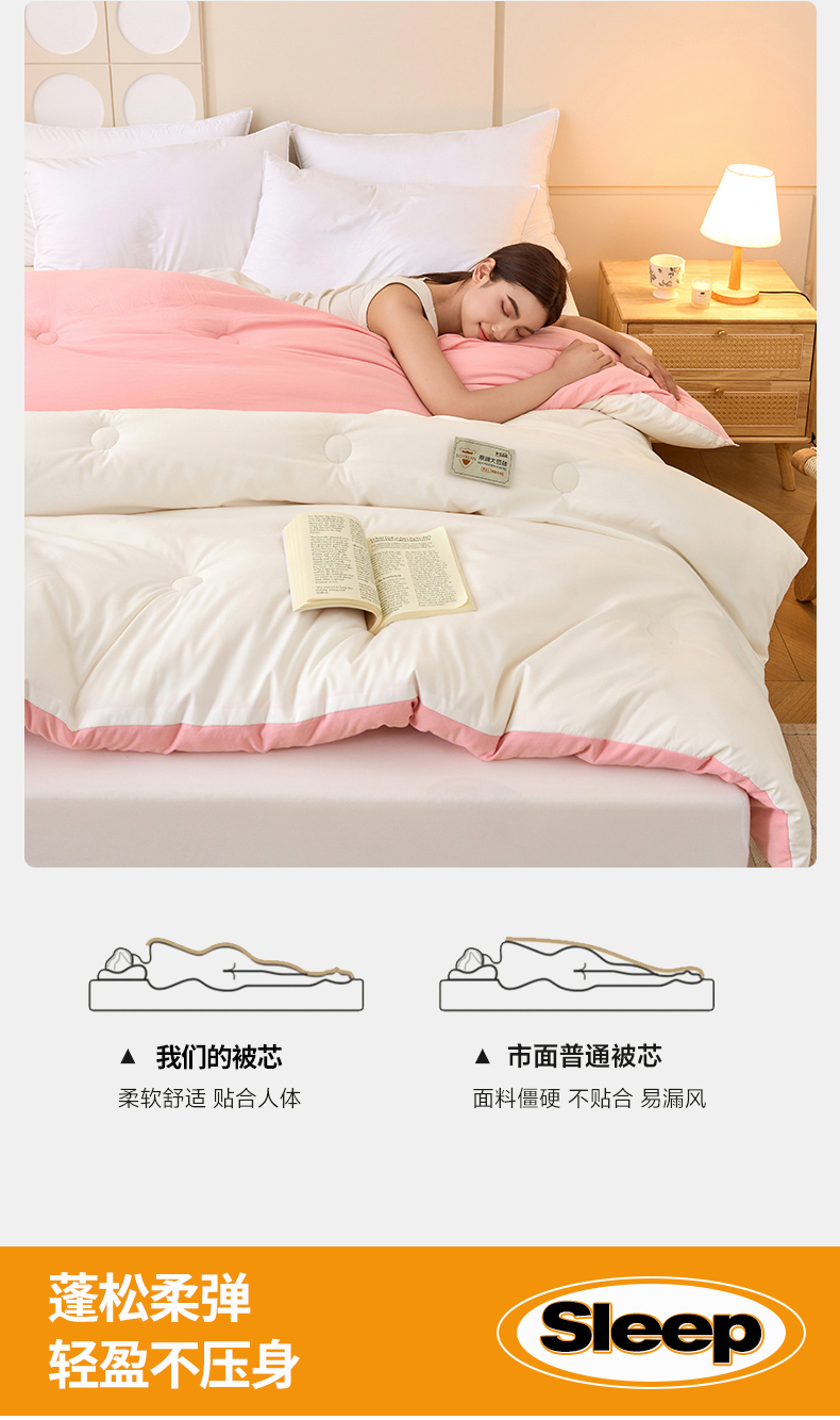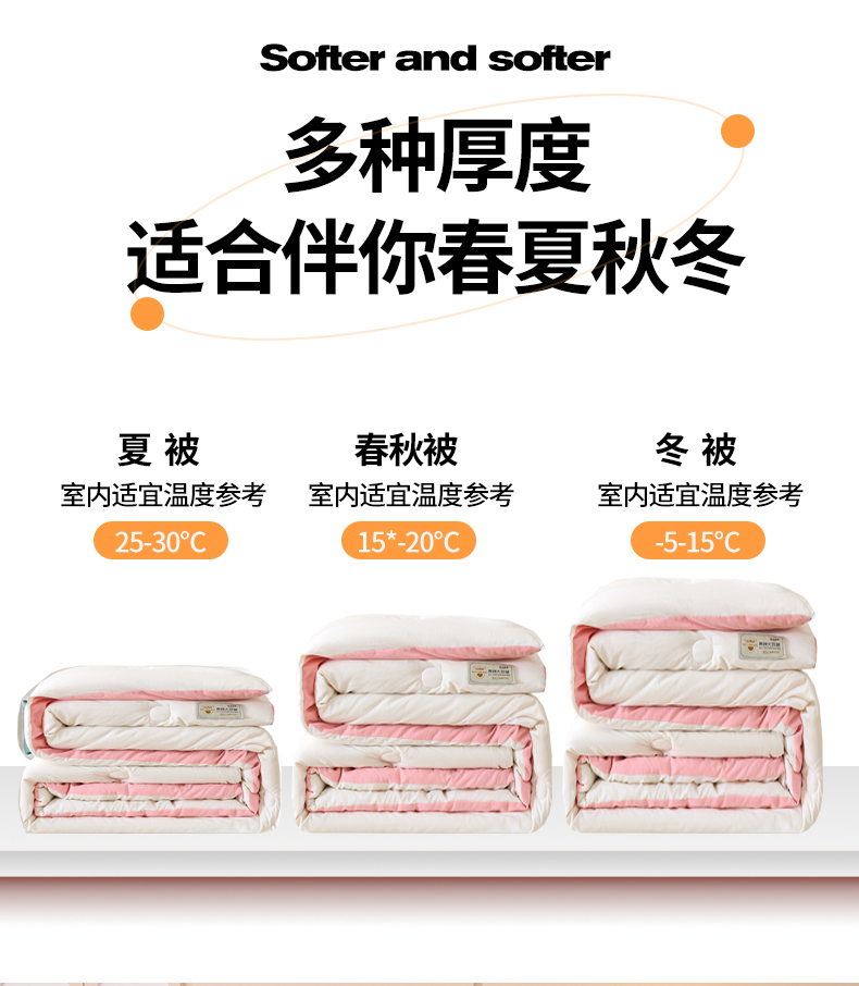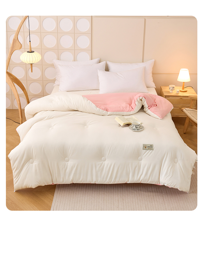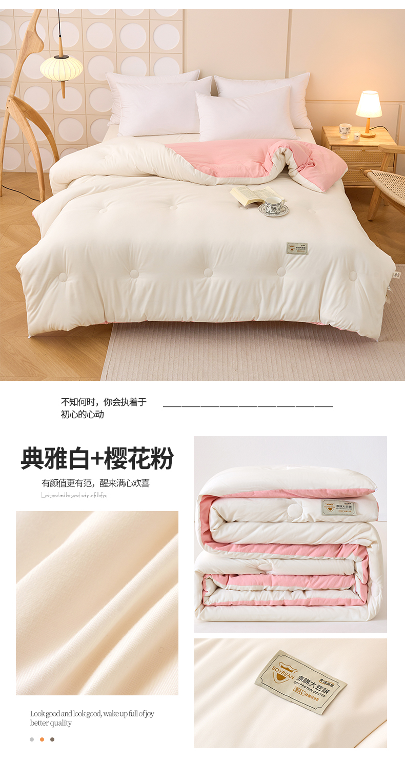 • 91家纺网 家纺一手货源 找家纺 梦恬佳 2024新款A类原棉亲肤棉大豆被夏被春秋被冬被 典雅白+樱花粉