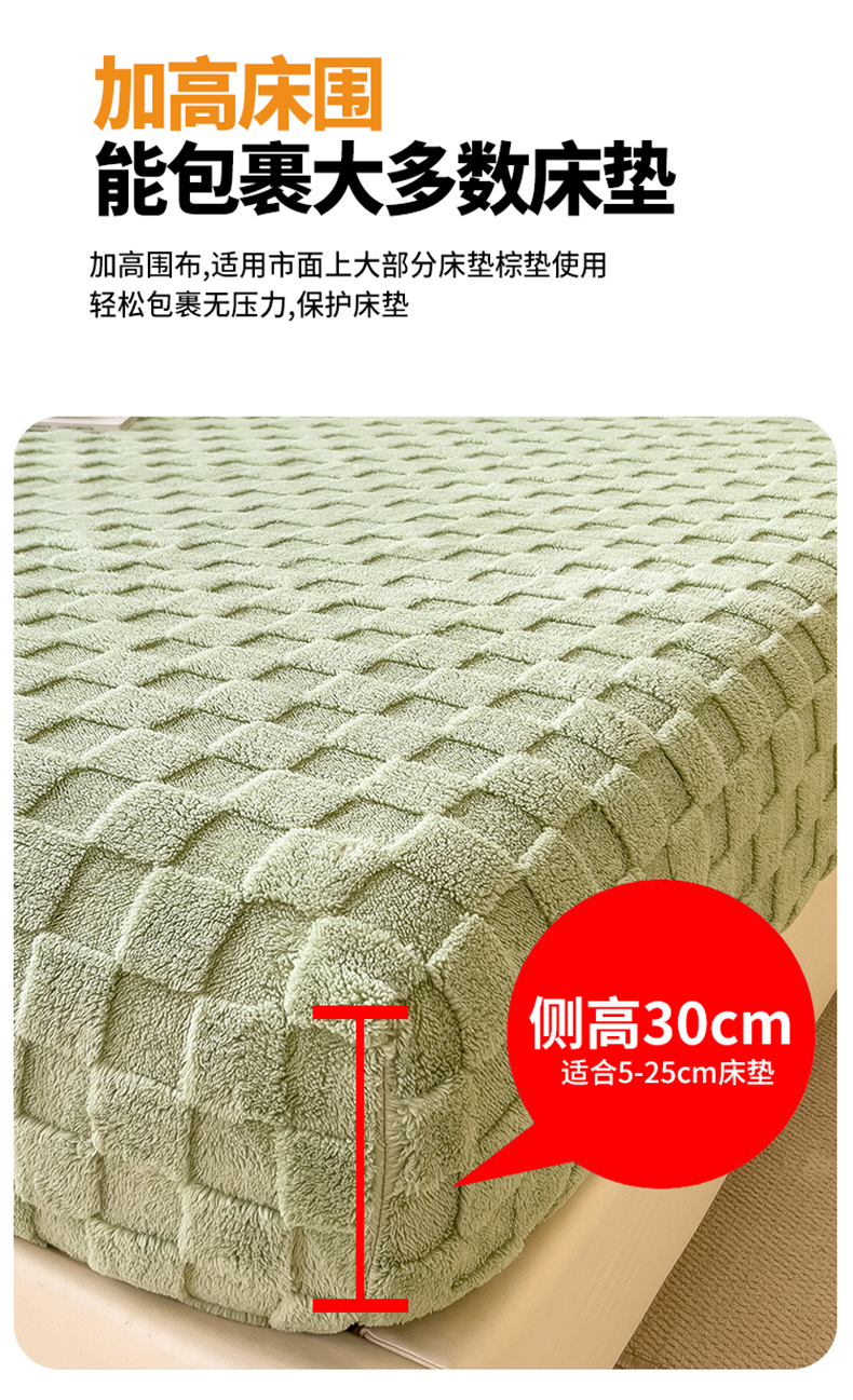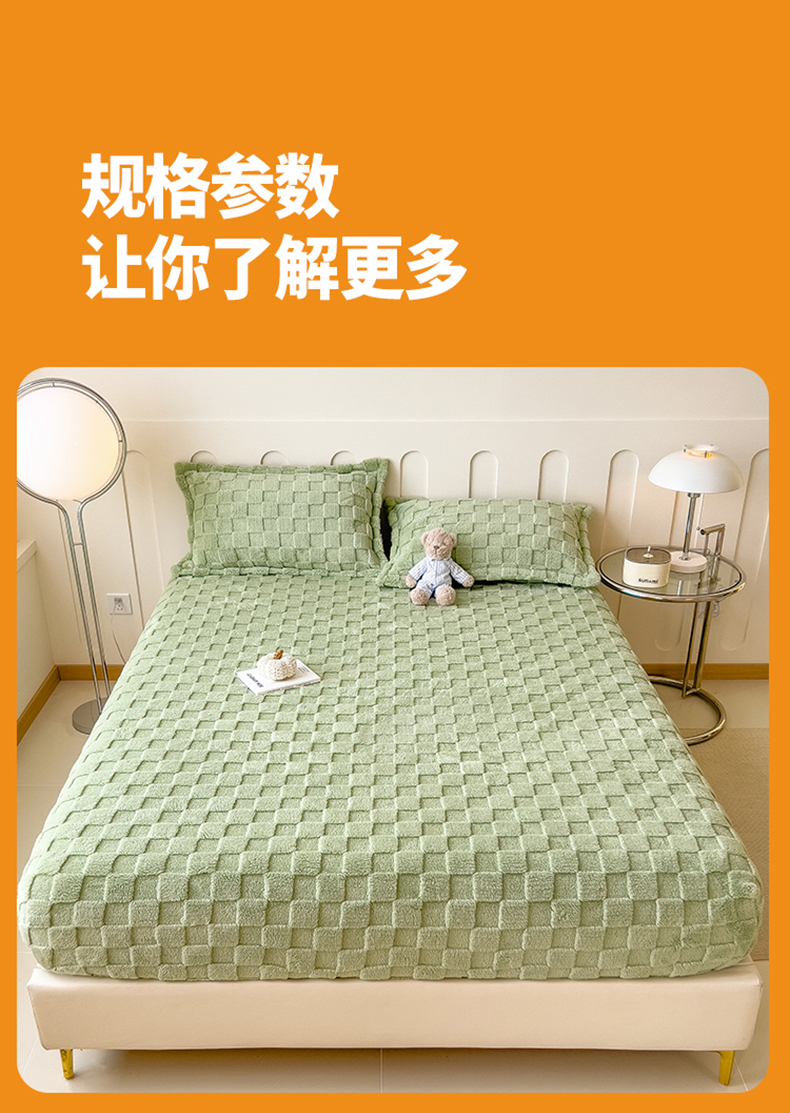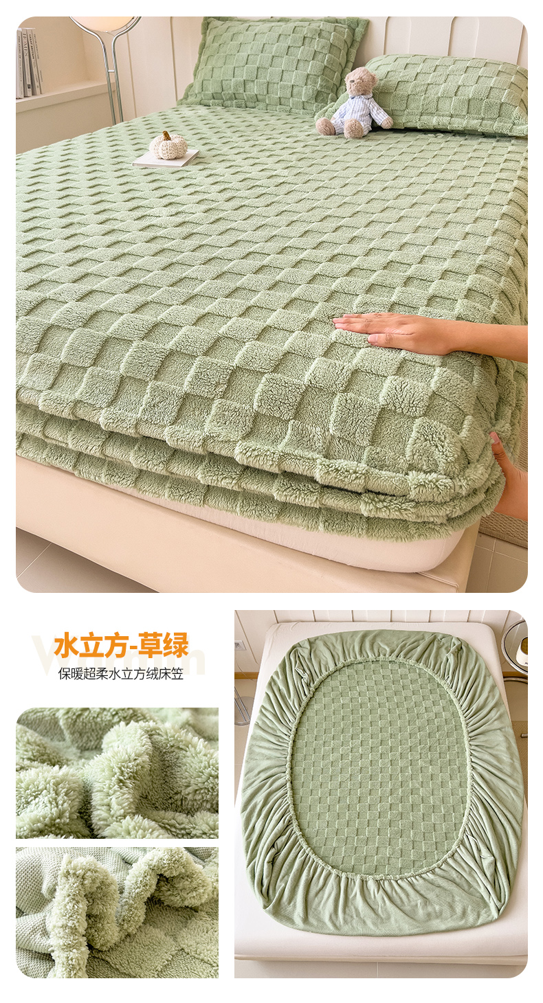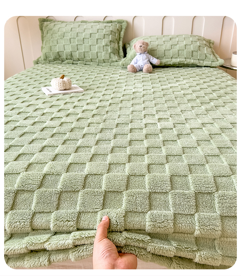 商品名称:世纪绒品 2025直播爆款牛奶绒塔芙绒纯色雕花床笠 水立方-草绿