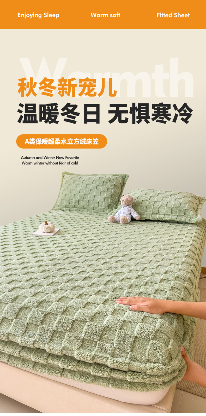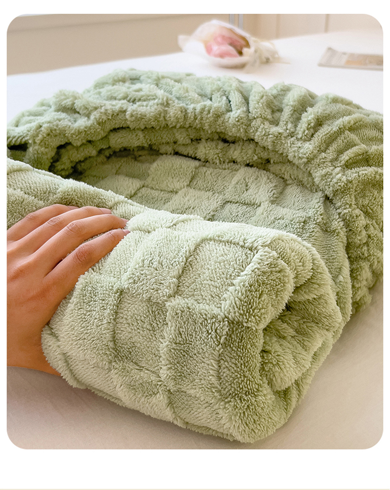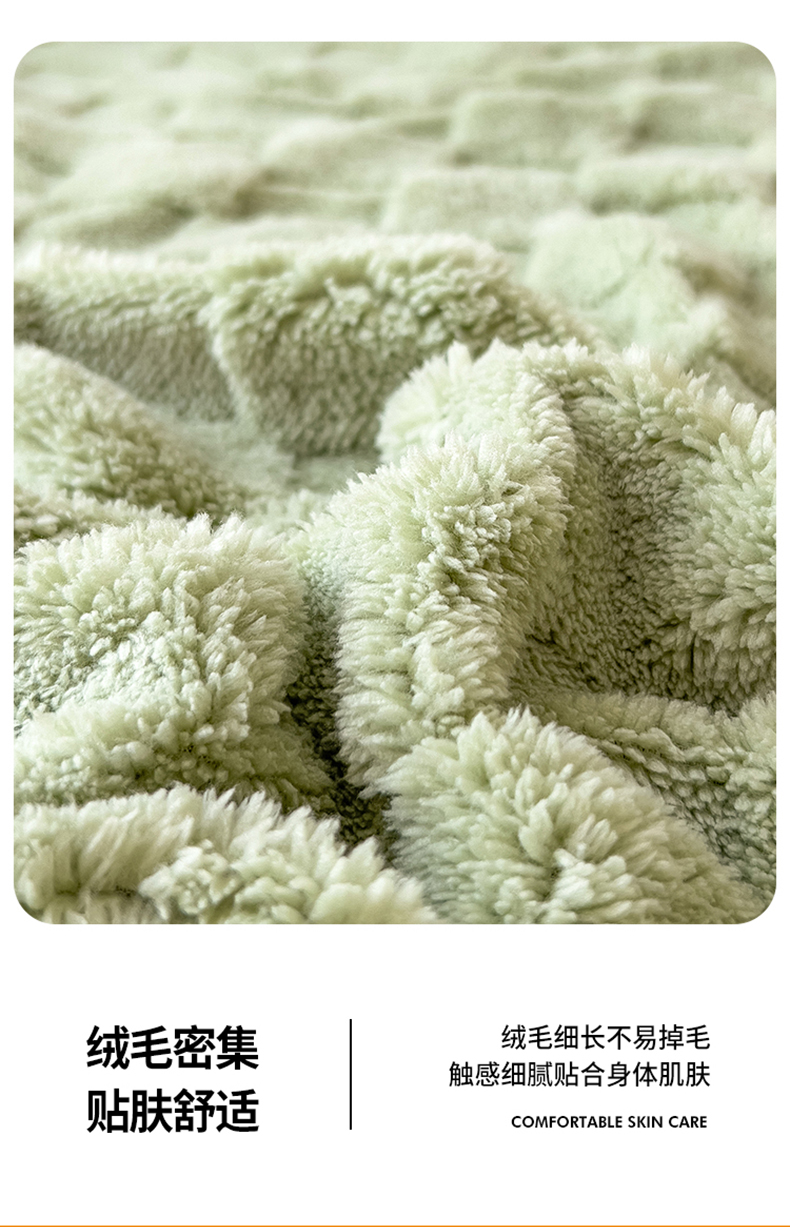 商品名称:世纪绒品 2025直播爆款牛奶绒塔芙绒纯色雕花床笠 水立方-草绿
